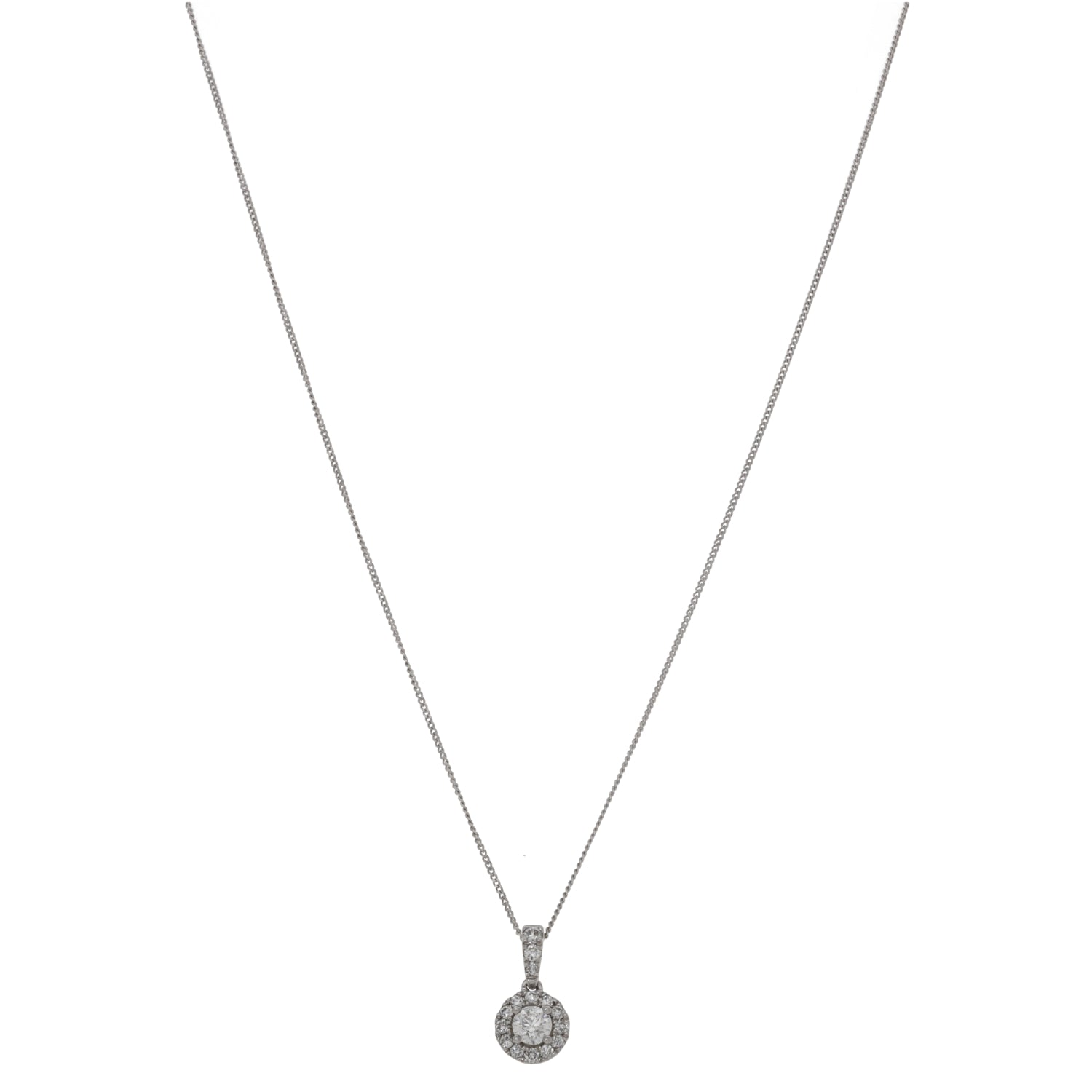 9ct White Gold 0.40ct Diamond Cluster Pendant With Chain