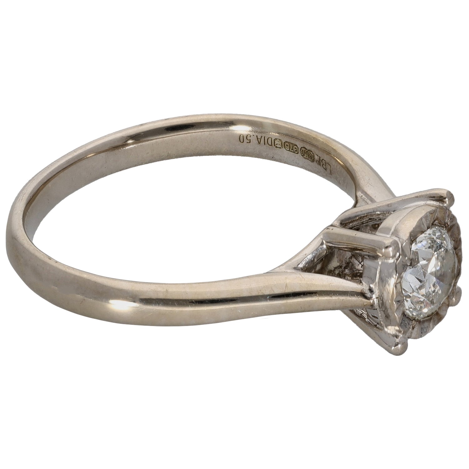 9ct White Gold 0.50ct Diamond Solitaire Ring Size M