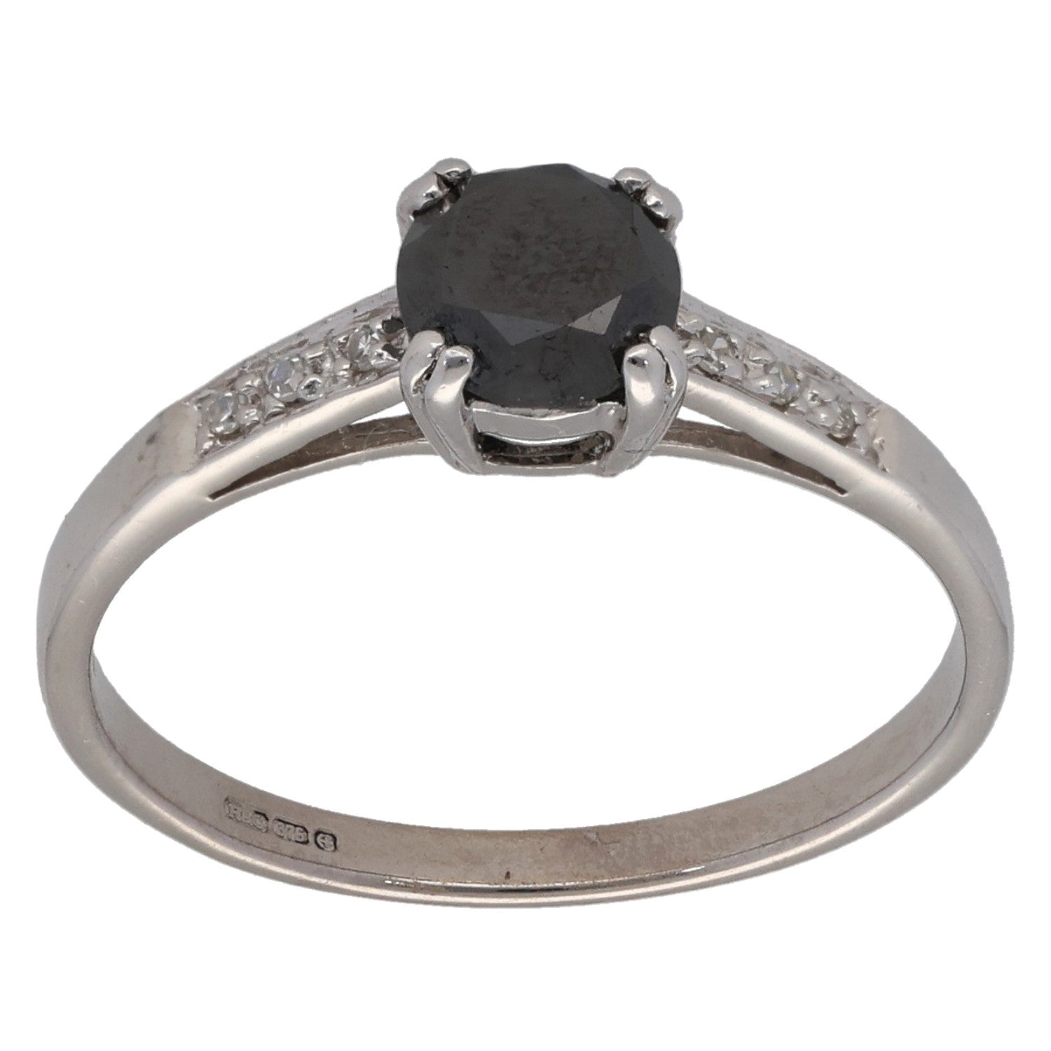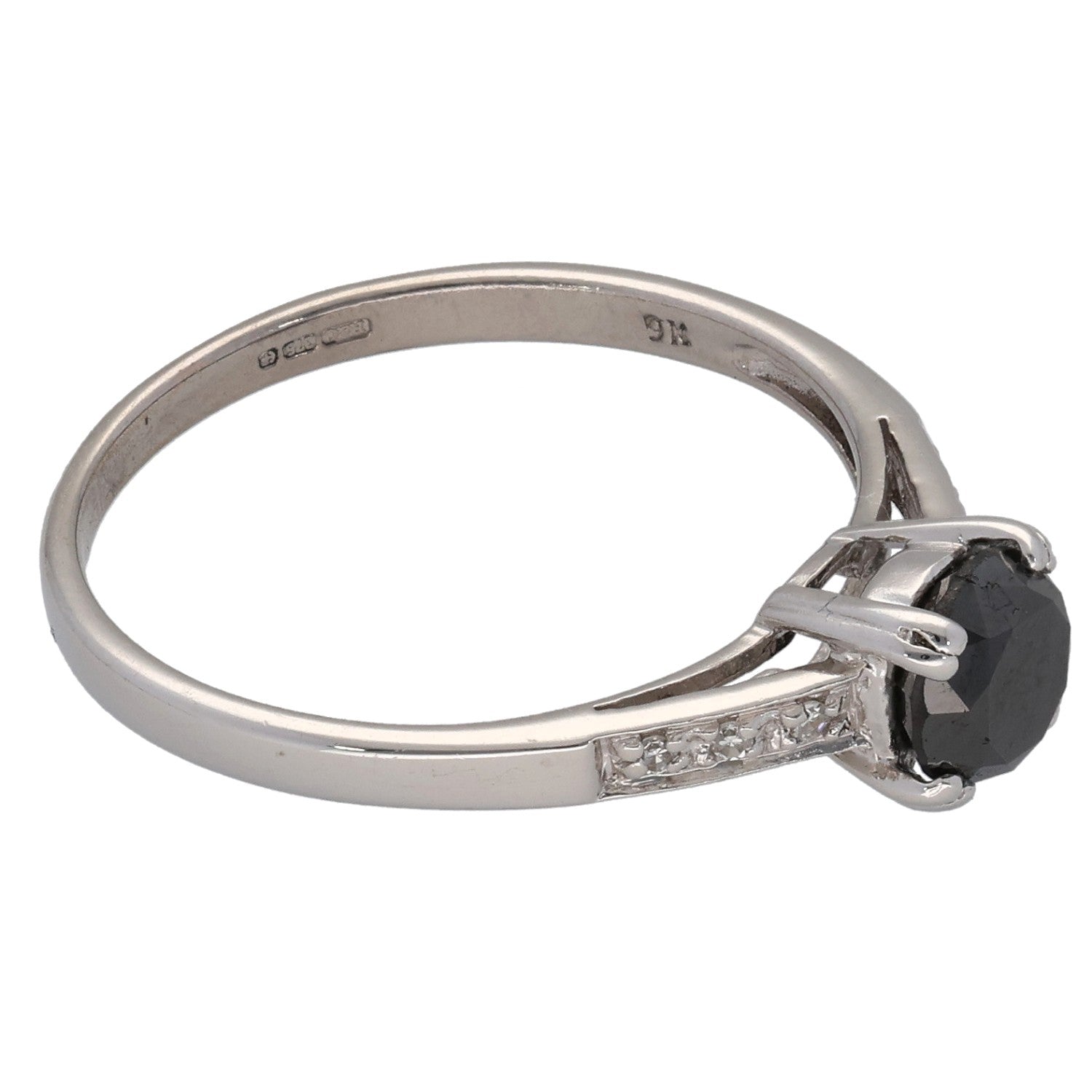 9ct White Gold 0.83ct Diamond Solitaire Ring With Accent Stones Size N