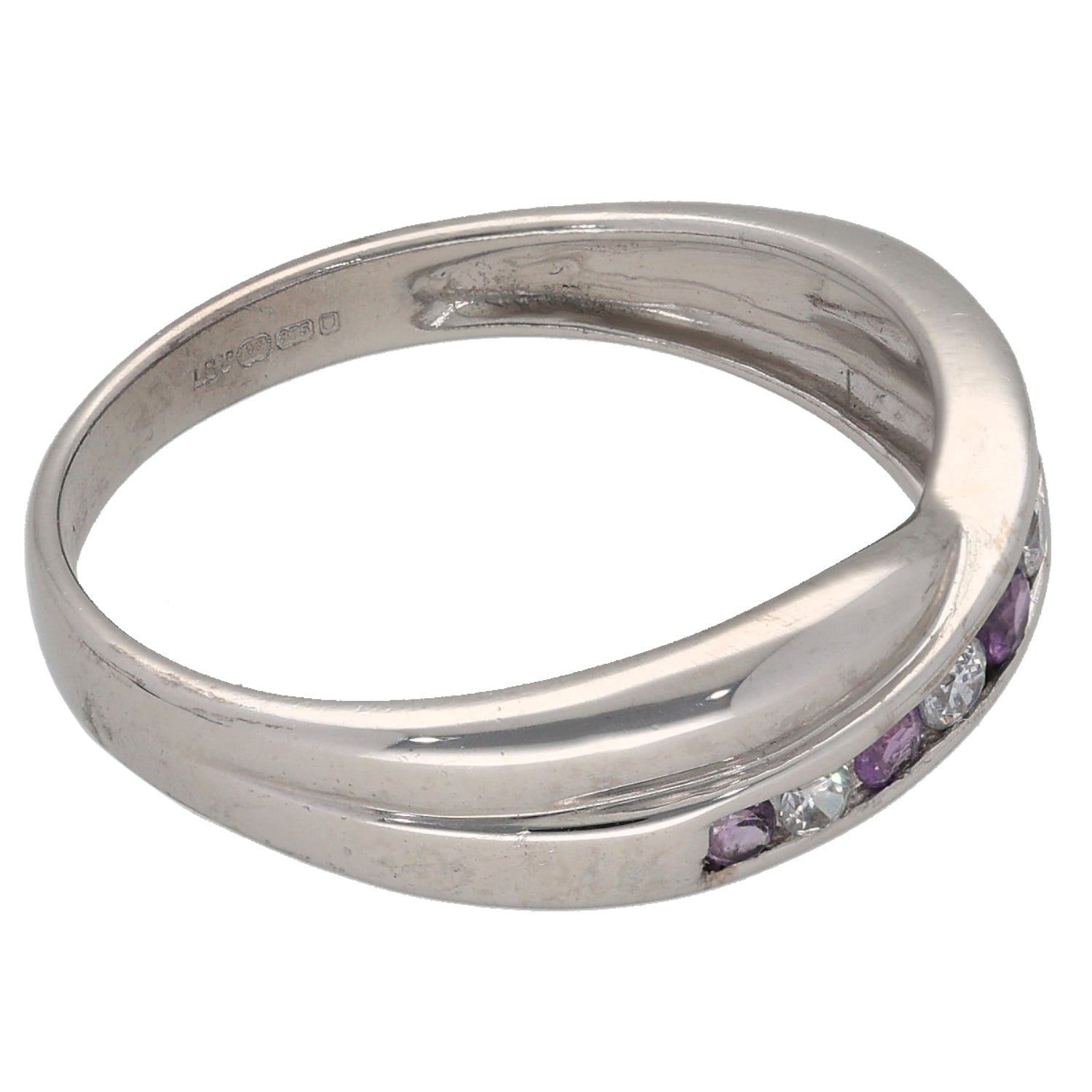 9ct White Gold Amethyst & Cubic Zirconia Half Eternity Ring Size O