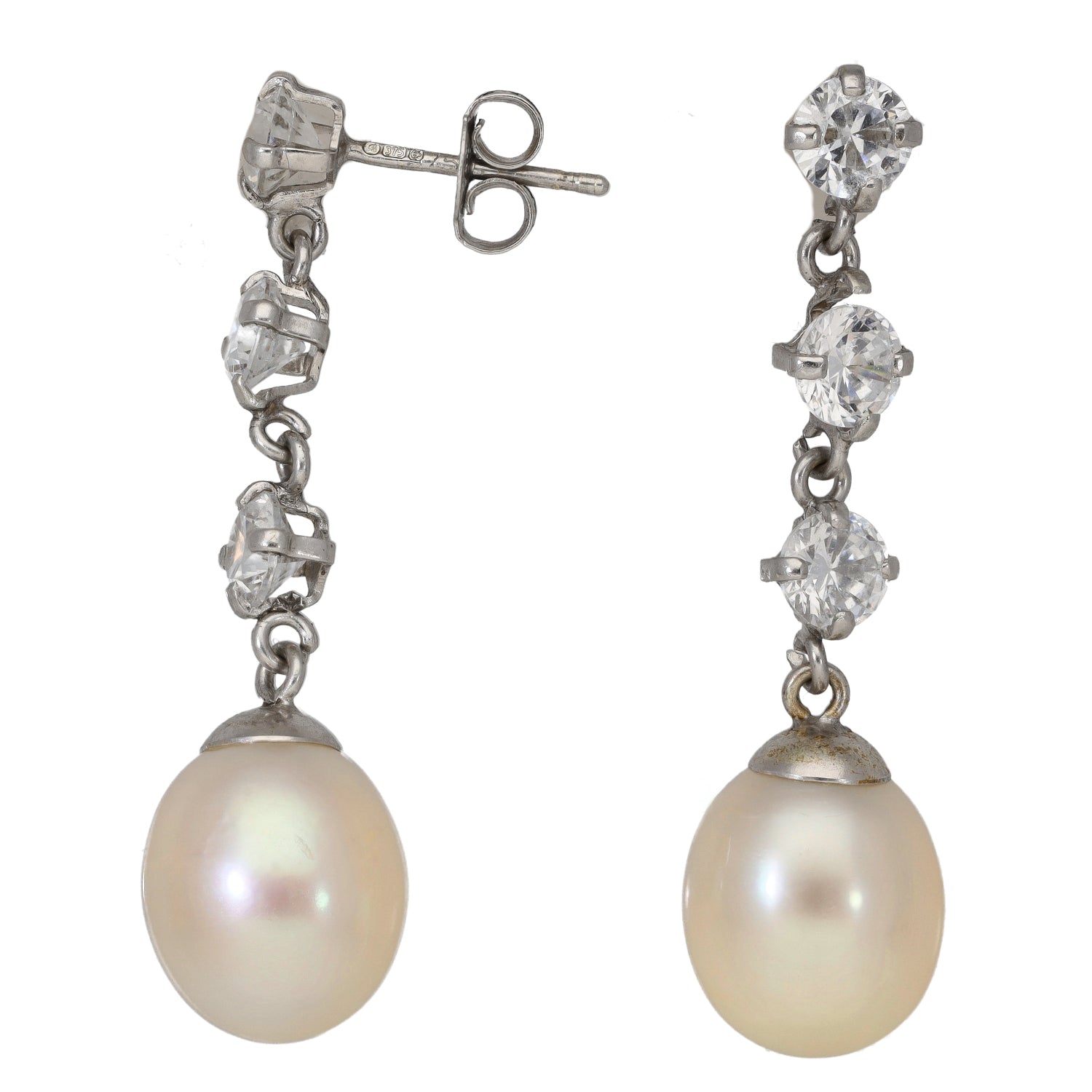 9ct White Gold Cultured Pearl & Cubic Zirconia Drop Earrings
