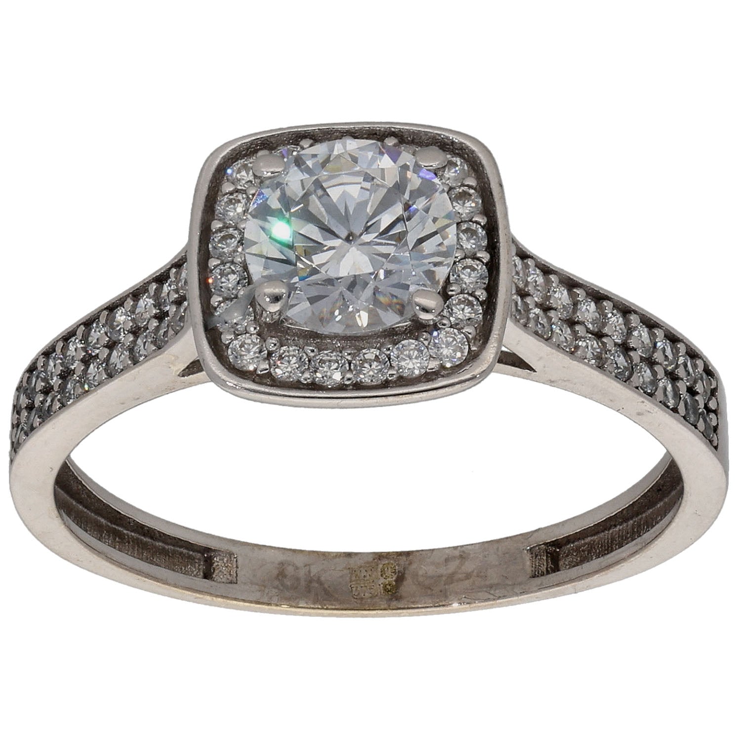 9ct White Gold Cubic Zirconia Halo Ring Size Q