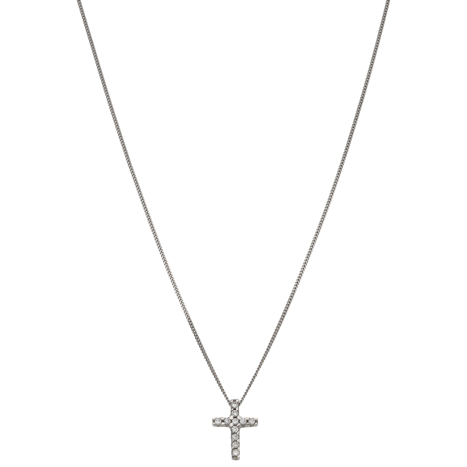 9ct White Gold Cubic Zirconia Cross Pendant With Chain