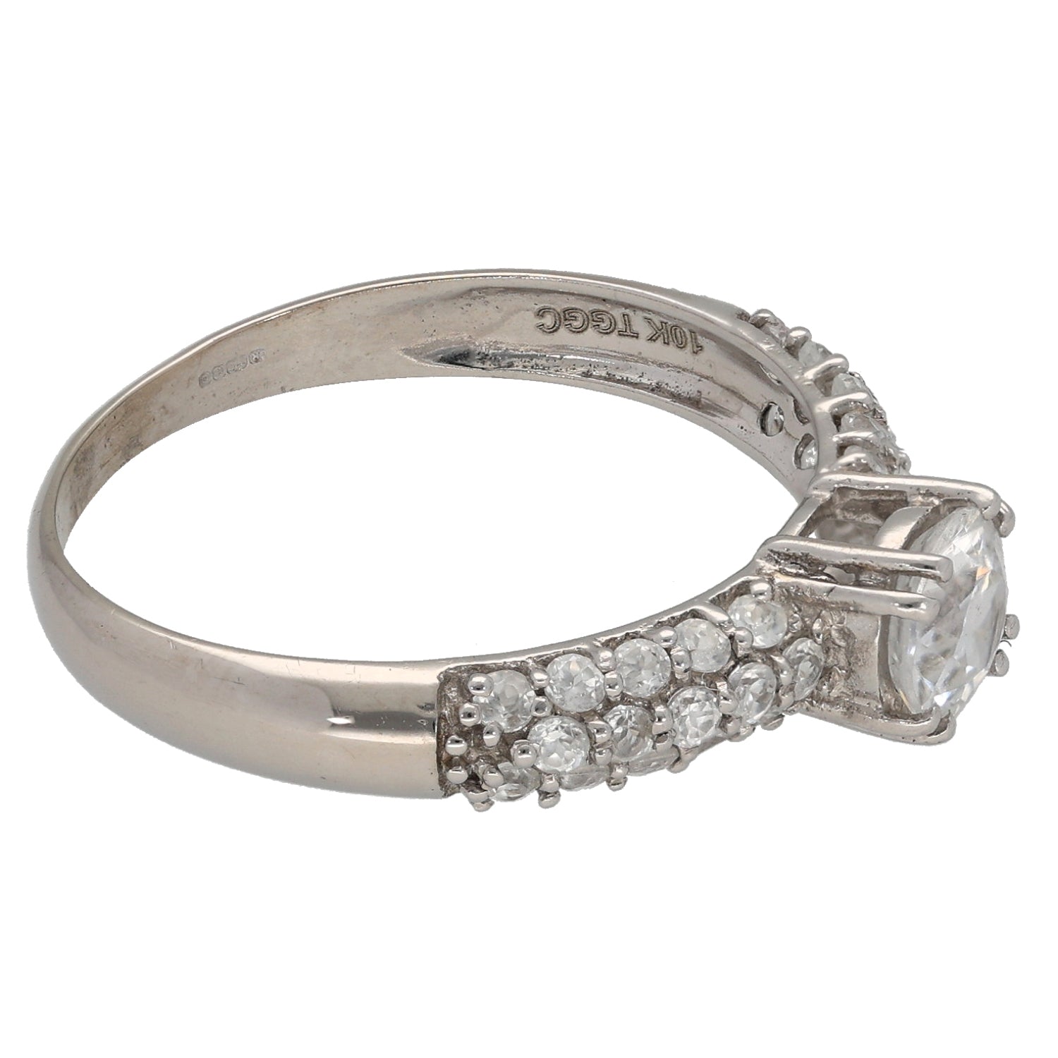 9ct White Gold Cubic Zirconia Single Stone Ring With Accent Stones Size R