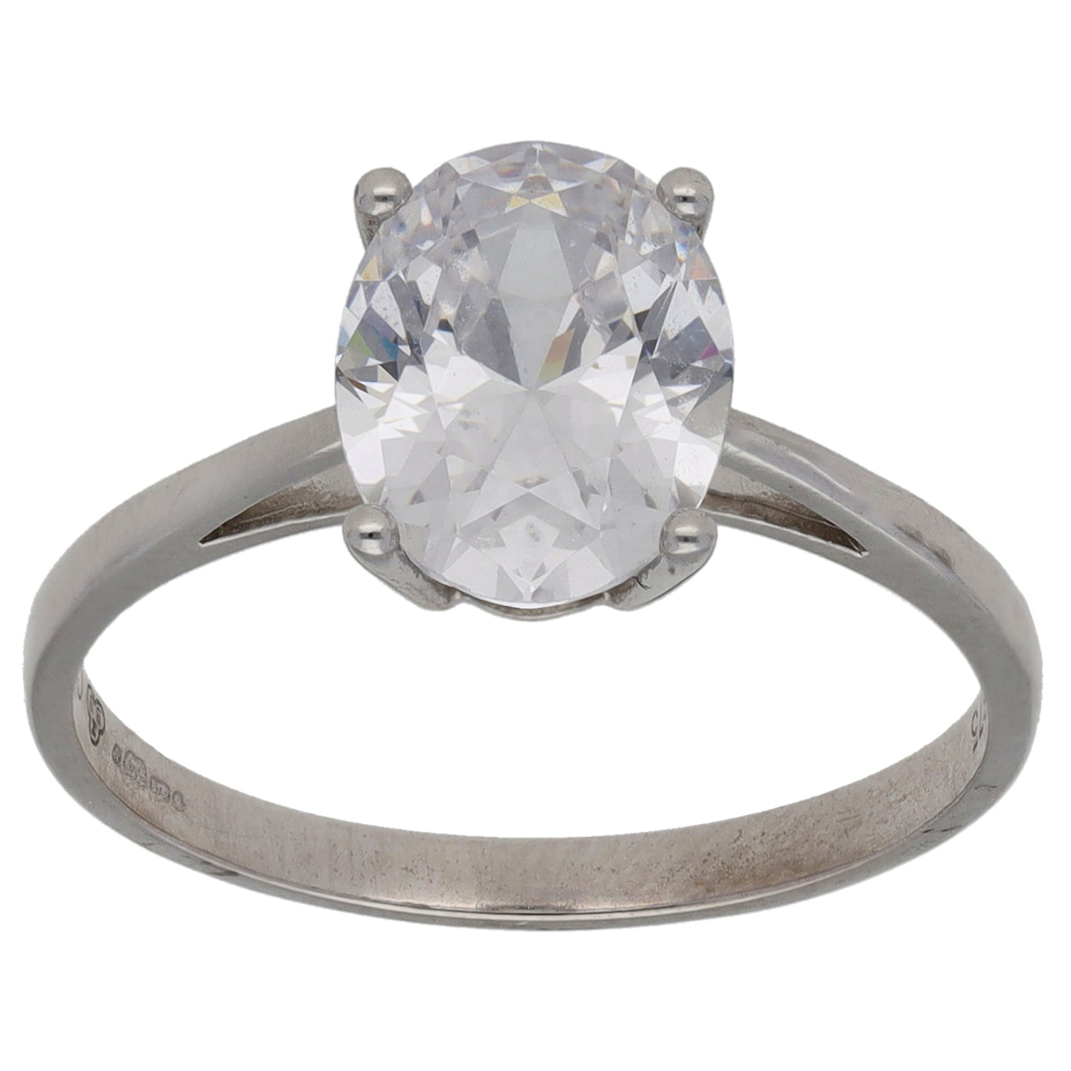 9ct White Gold Cubic Zirconia Single Stone Ring Size L