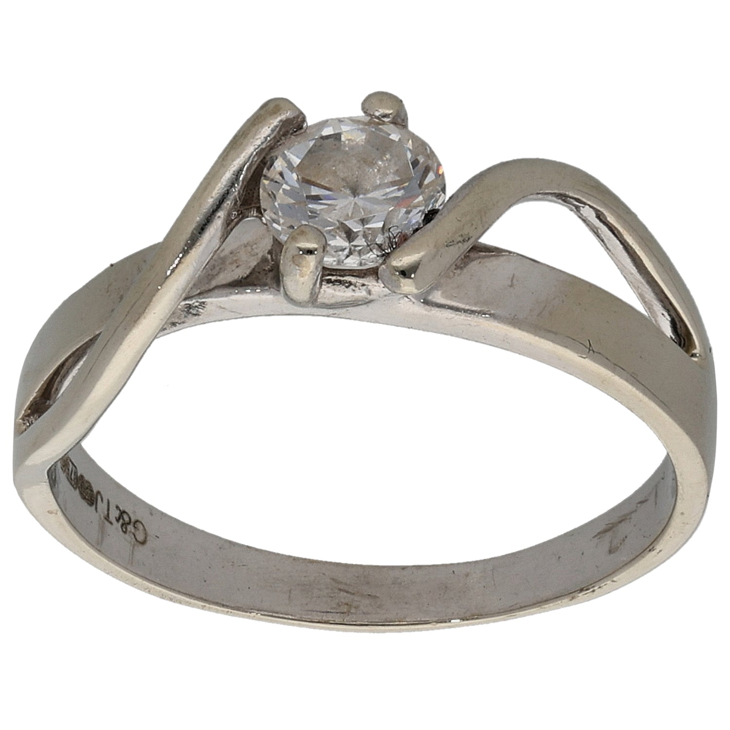 9ct White Gold Cubic Zirconia Single Stone Ring Size N