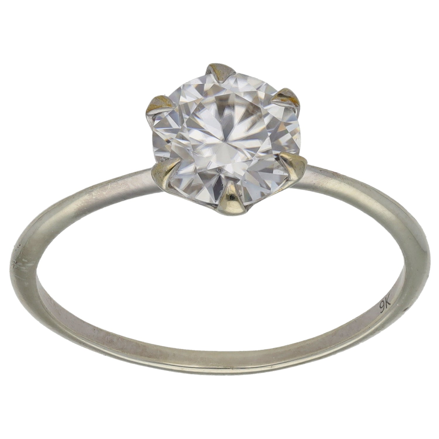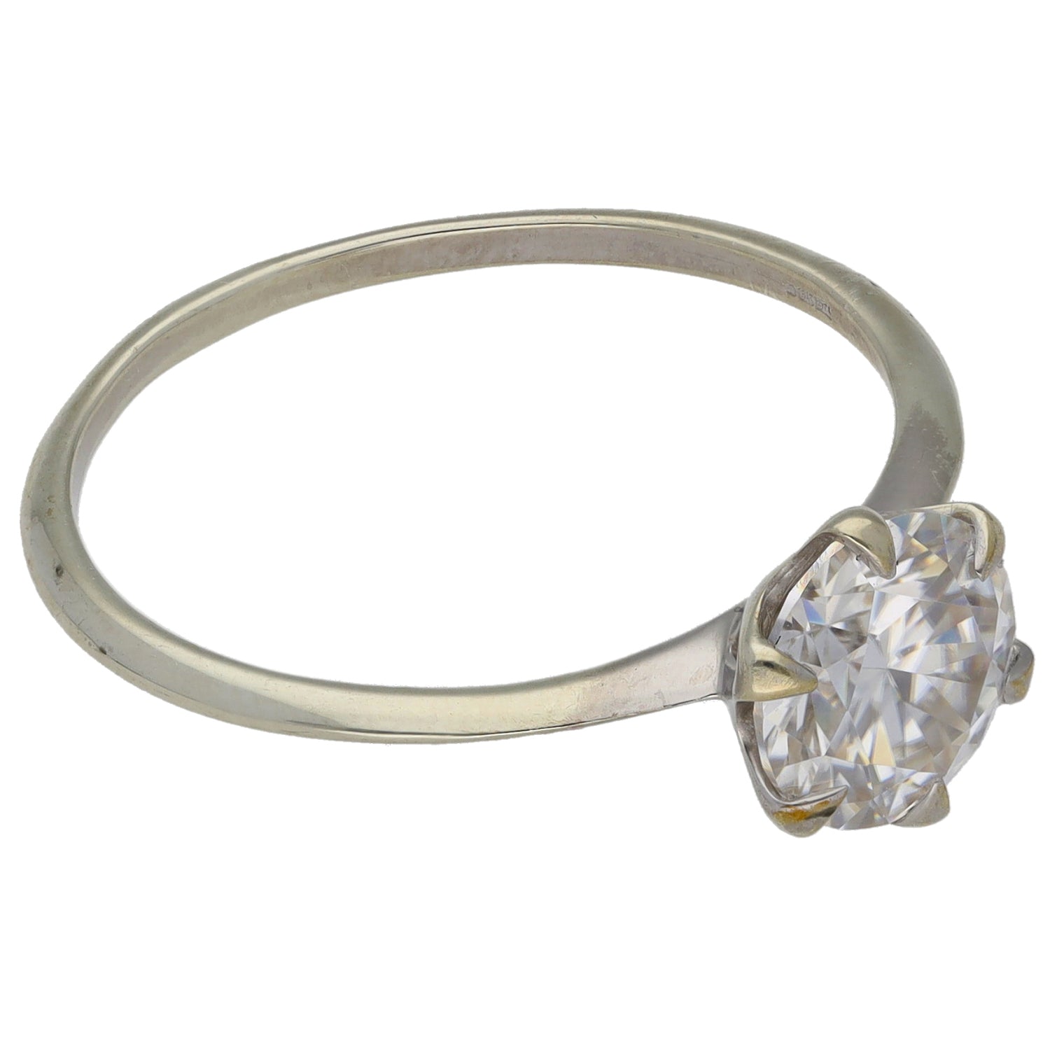9ct White Gold Cubic Zirconia Single Stone Ring Size U