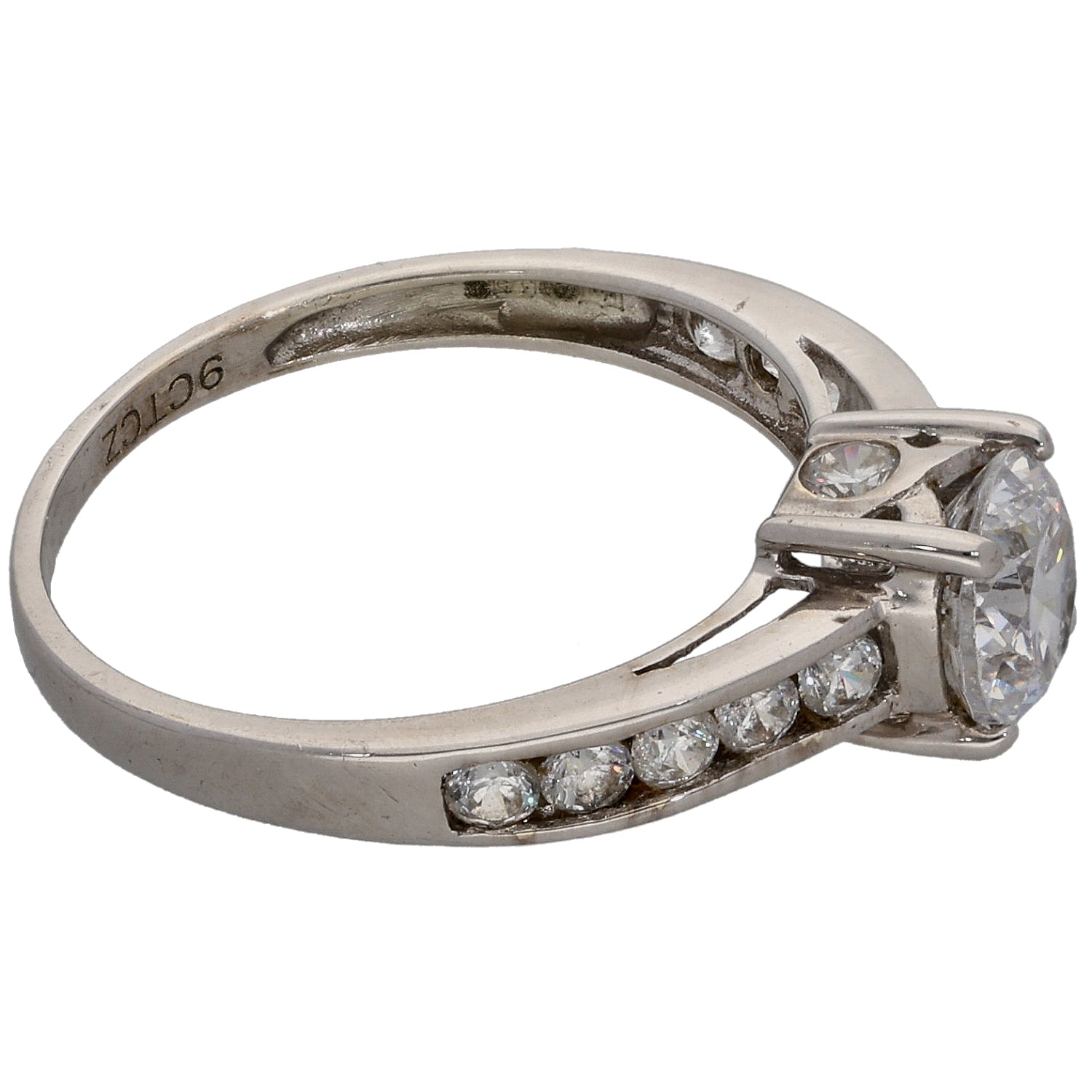 9ct White Gold Cubic Zirconia Single Stone Ring with Accent Stones Size L