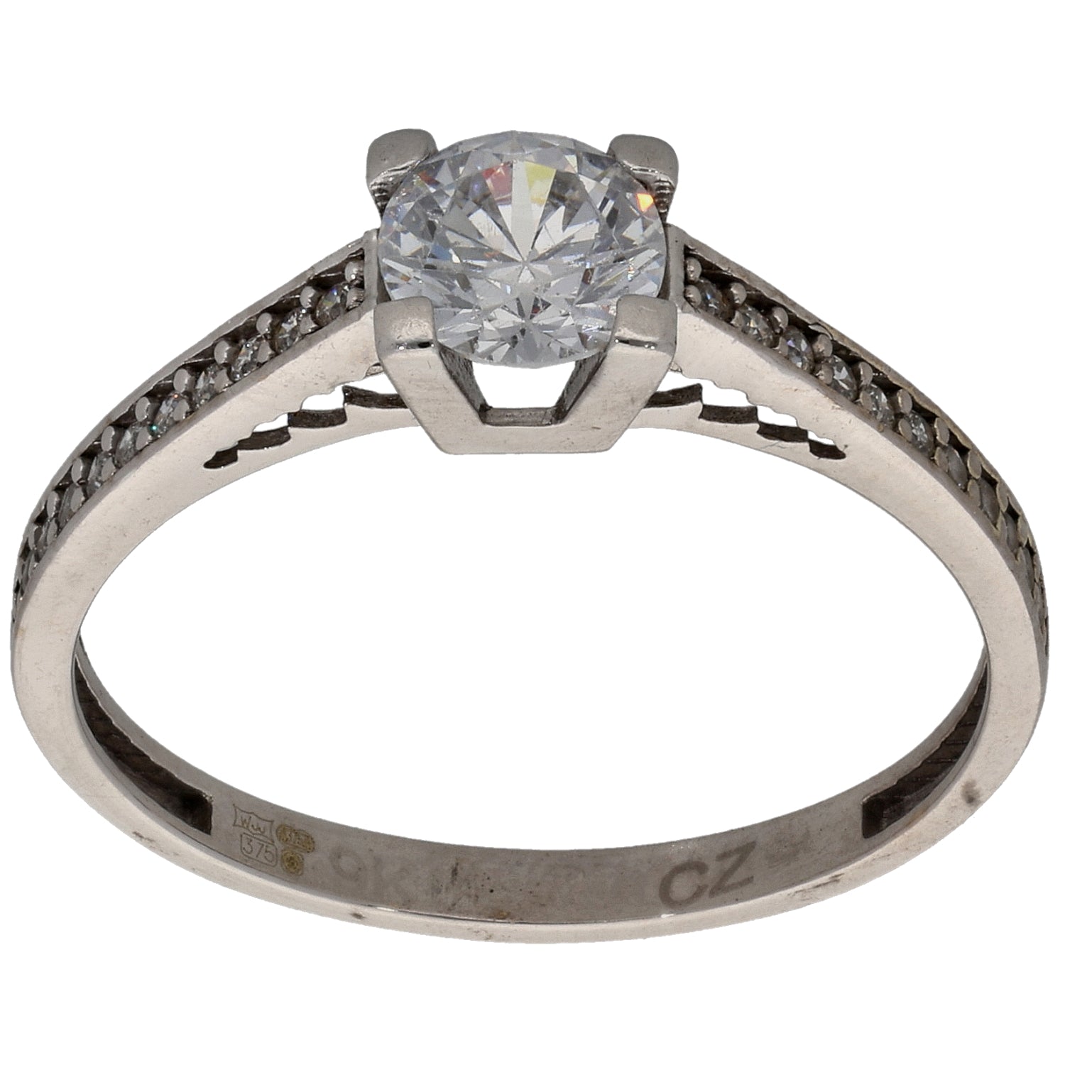 9ct White Gold Cubic Zirconia Single Stone Ring with Accent Stones Size O