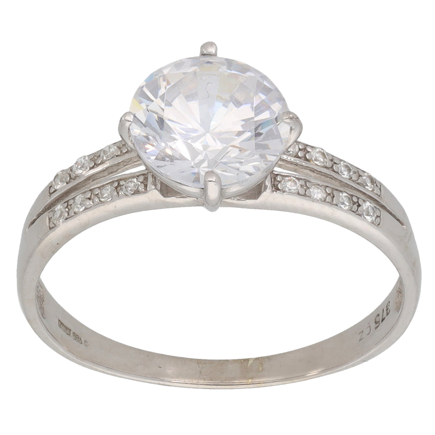 9ct White Gold Cubic Zirconia Single Stone Ring with Accent Stones Size Q