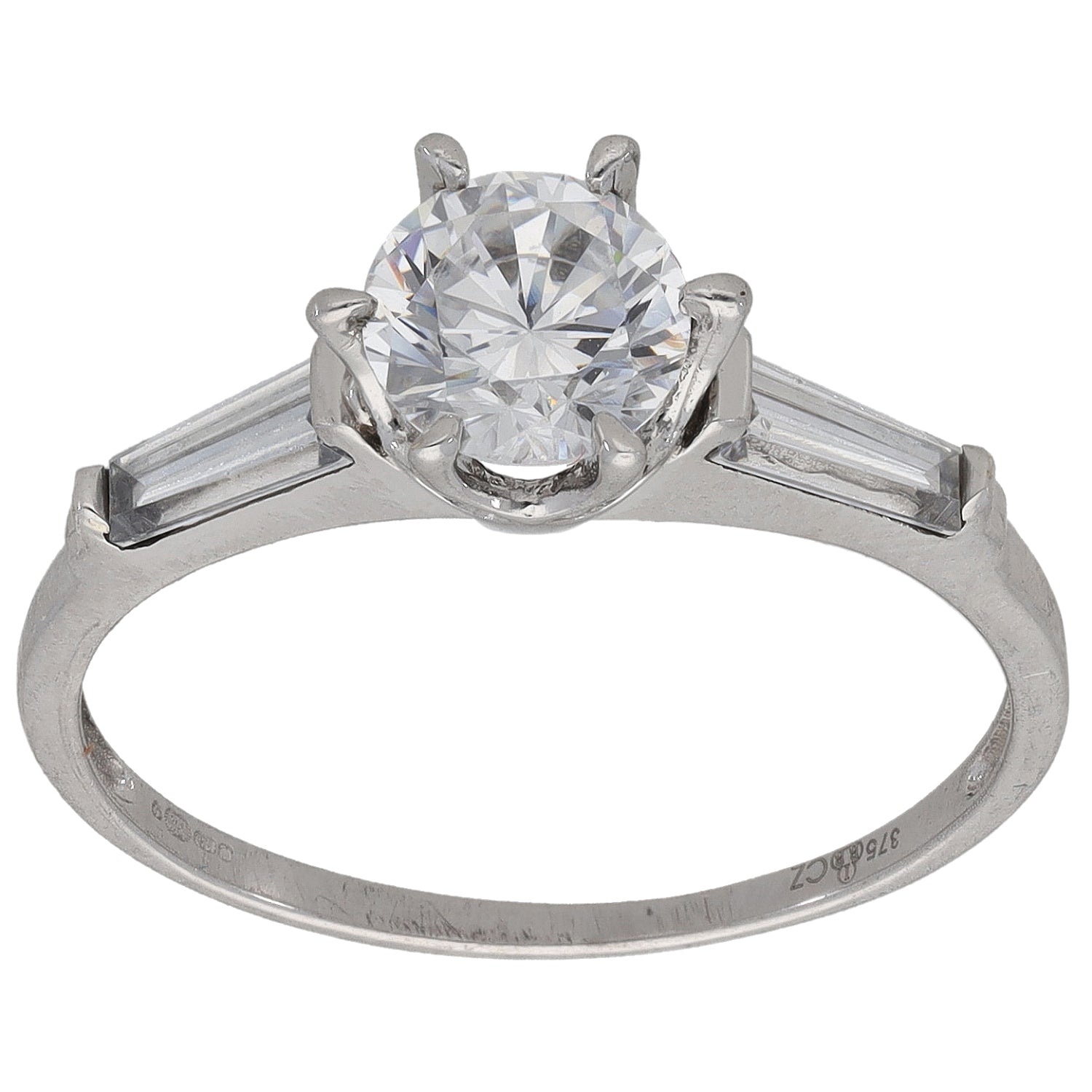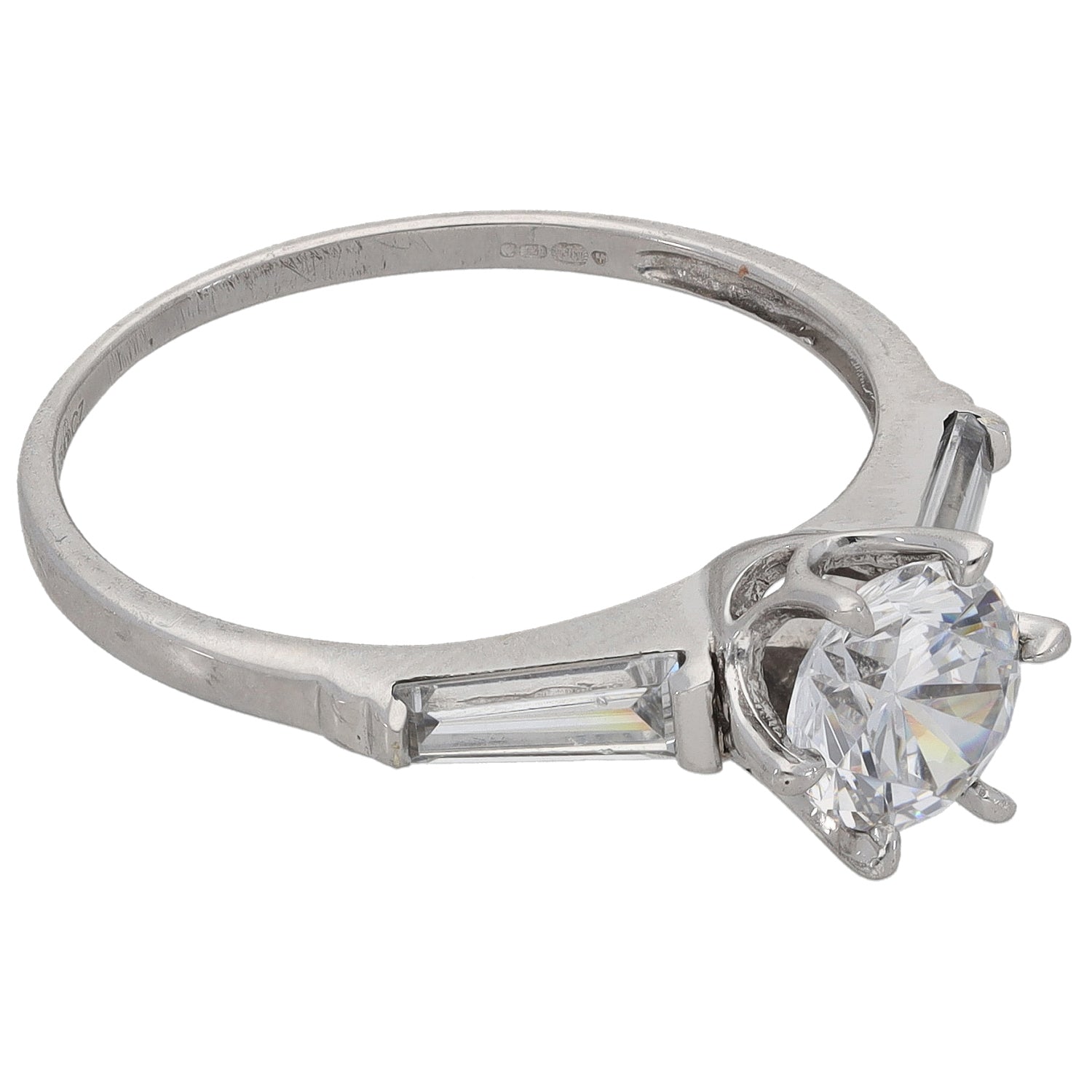 9ct White Gold Cubic Zircona Single Stone Ring with Accent Stones Size S