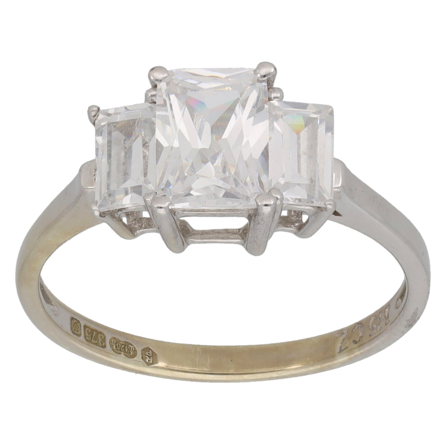9ct White Gold Cubic Zirconia Trilogy Ring Size M