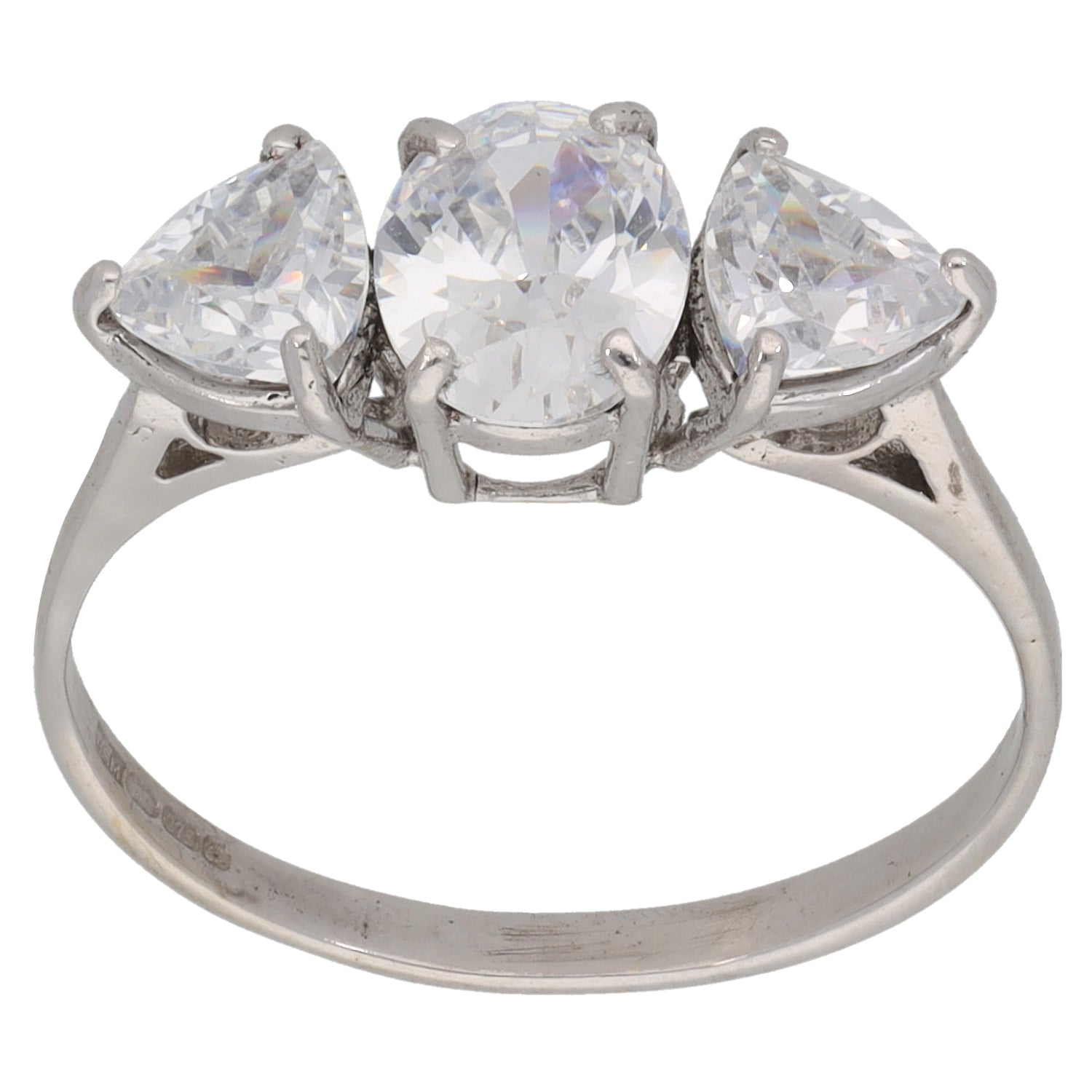 9ct White Gold Cubic Zirconia Trilogy Ring Size P