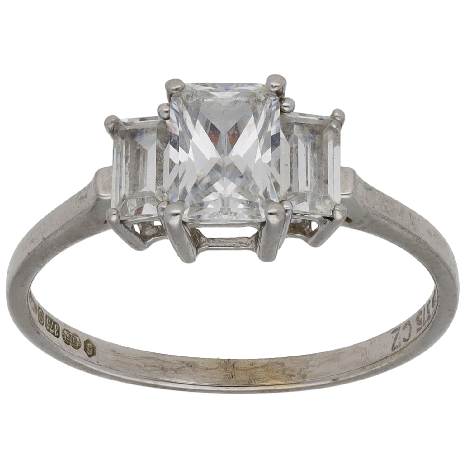 9ct White Gold Cubic Zirconia Three Stone Ring Size Q