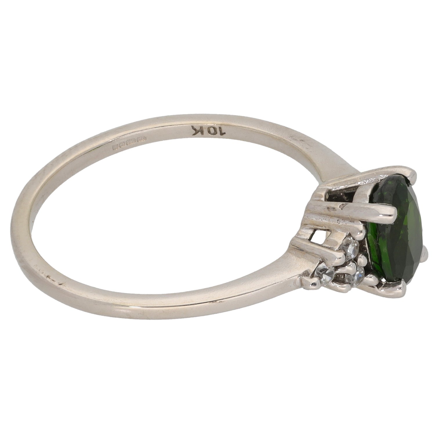 9ct White Gold Diopside & Cubic Zirconia Dress/Cocktail Ring Size N