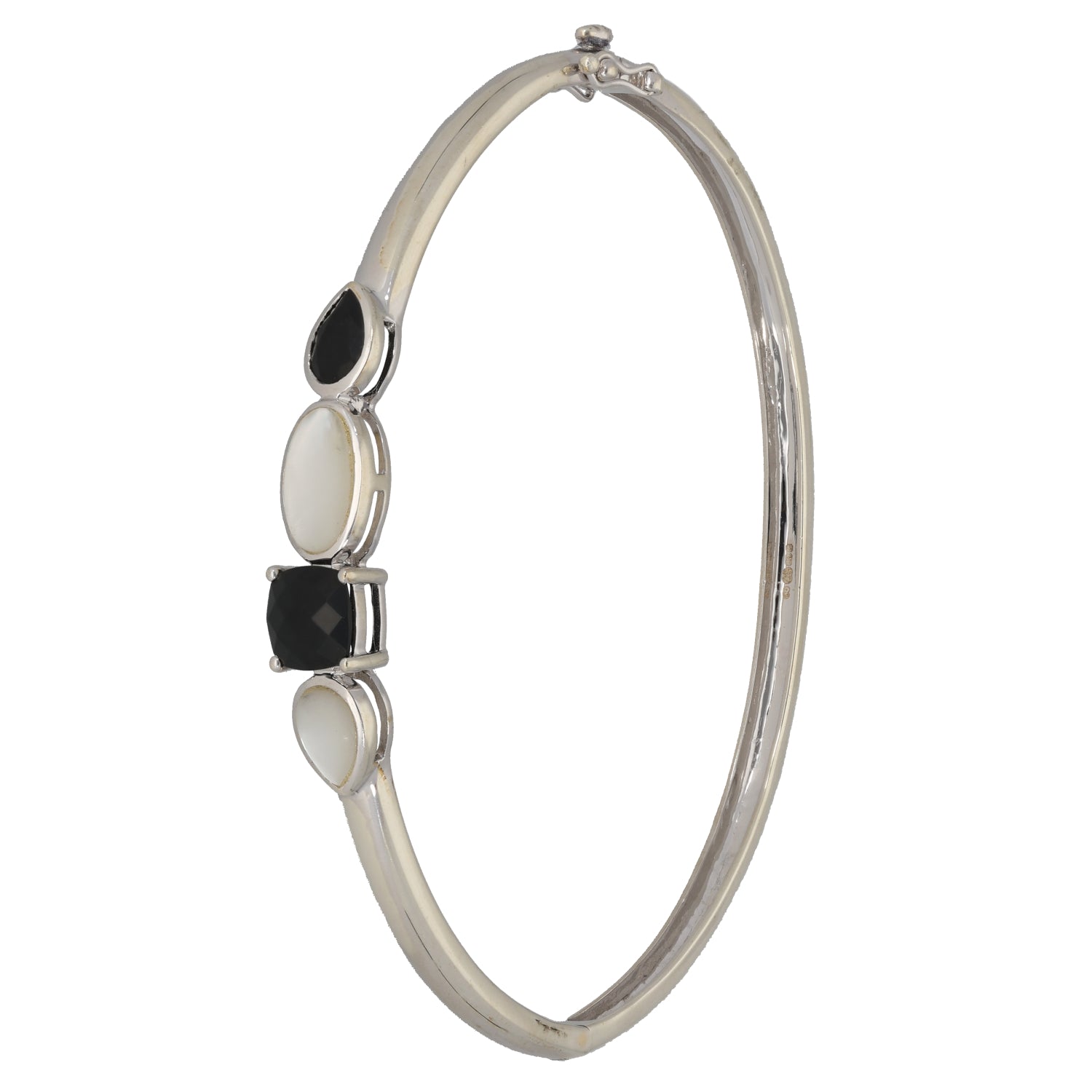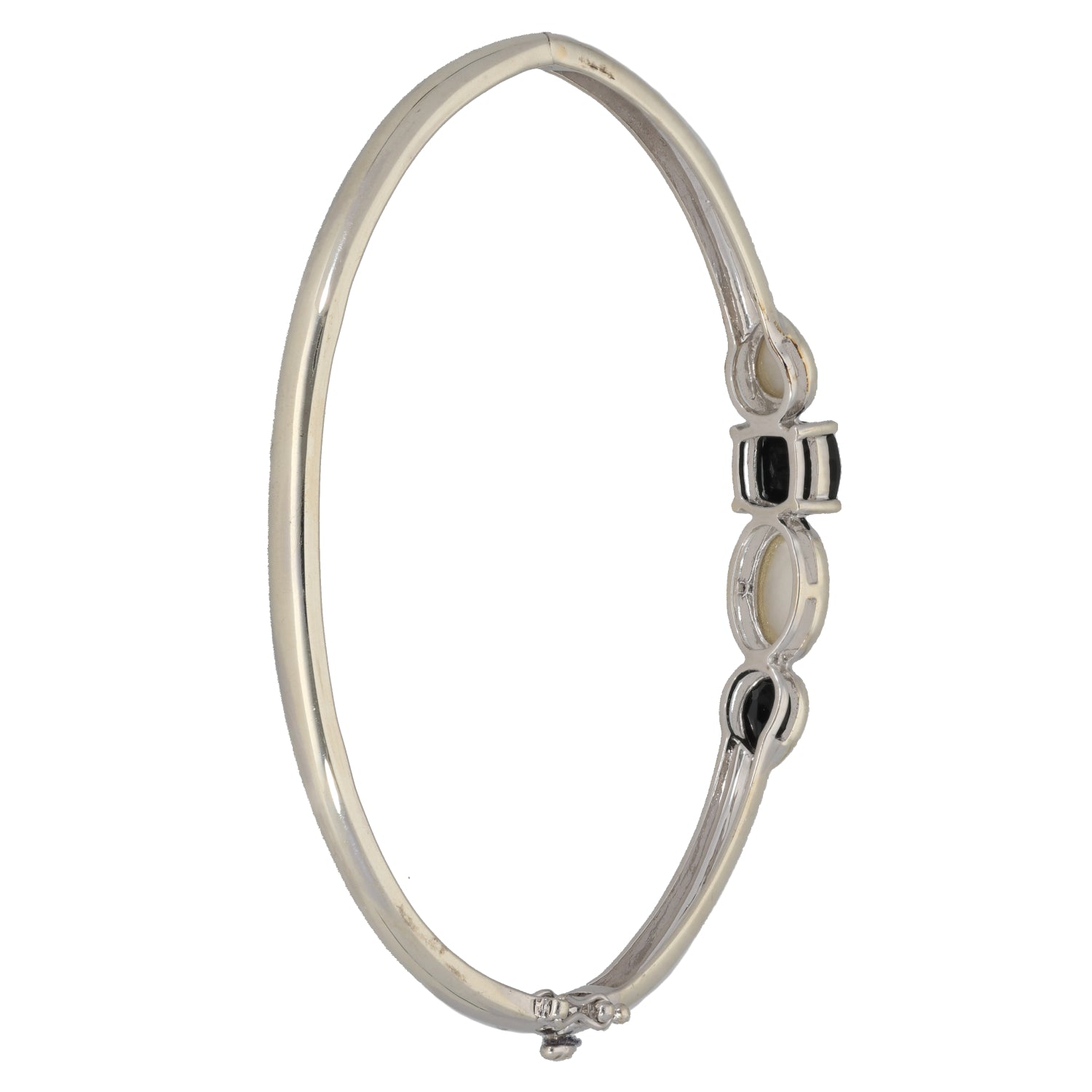 9ct White Gold Imitation Gems Hinged/Clasp Bangle