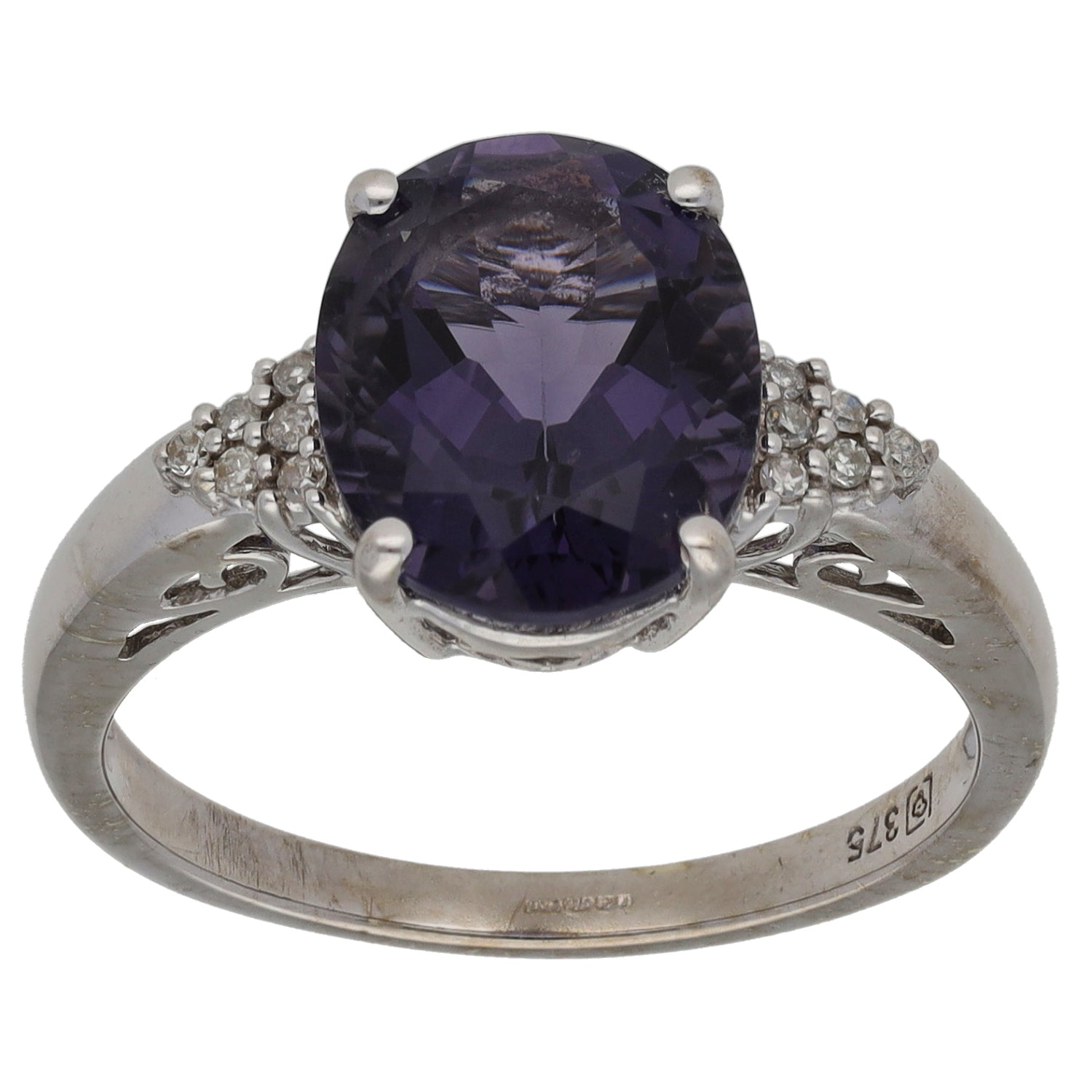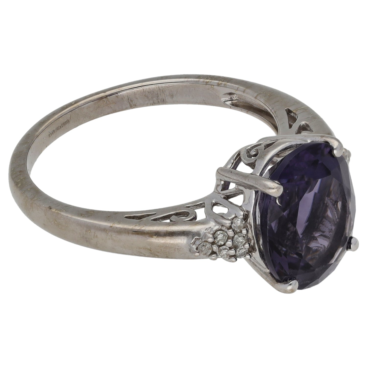 9ct White Gold Iolite & 0.06ct Diamond Dress/Cocktail Ring Size P