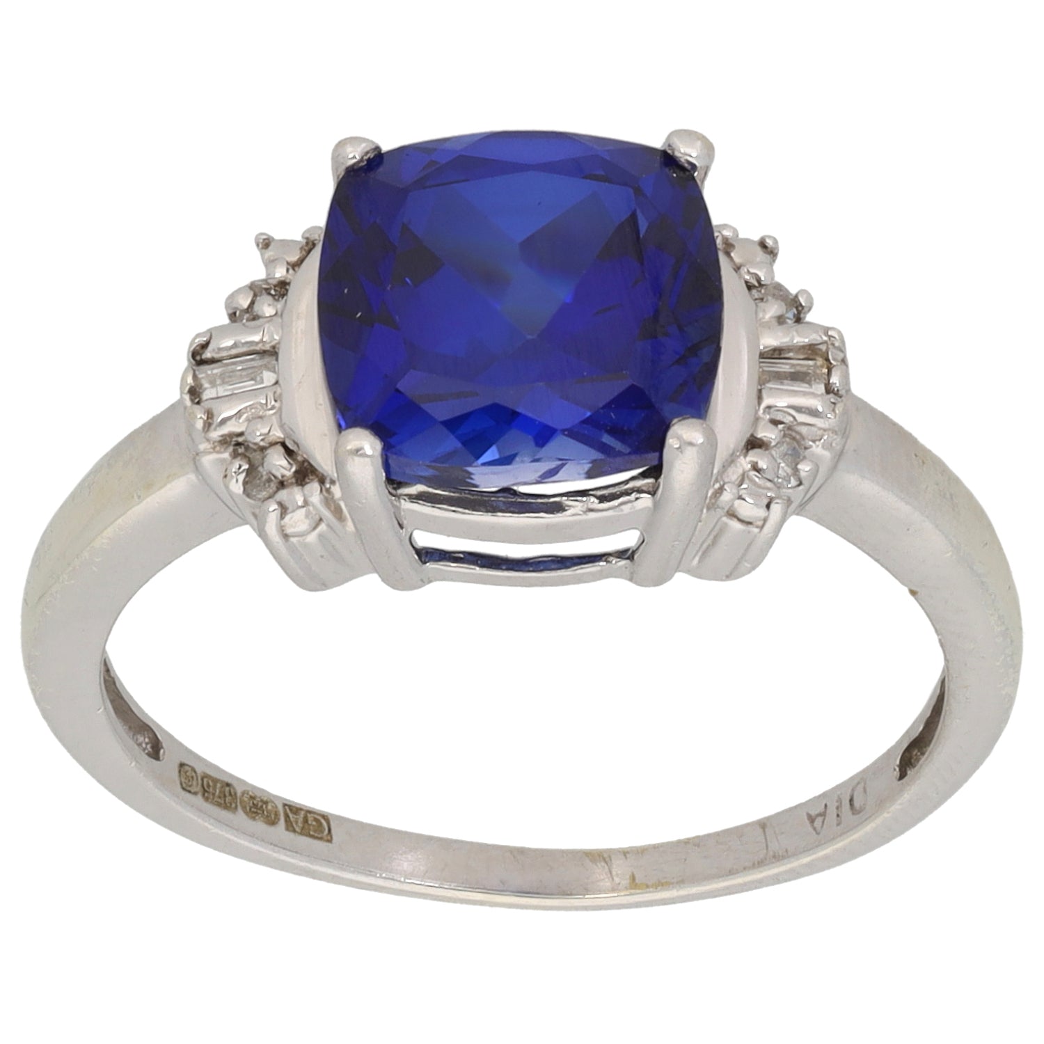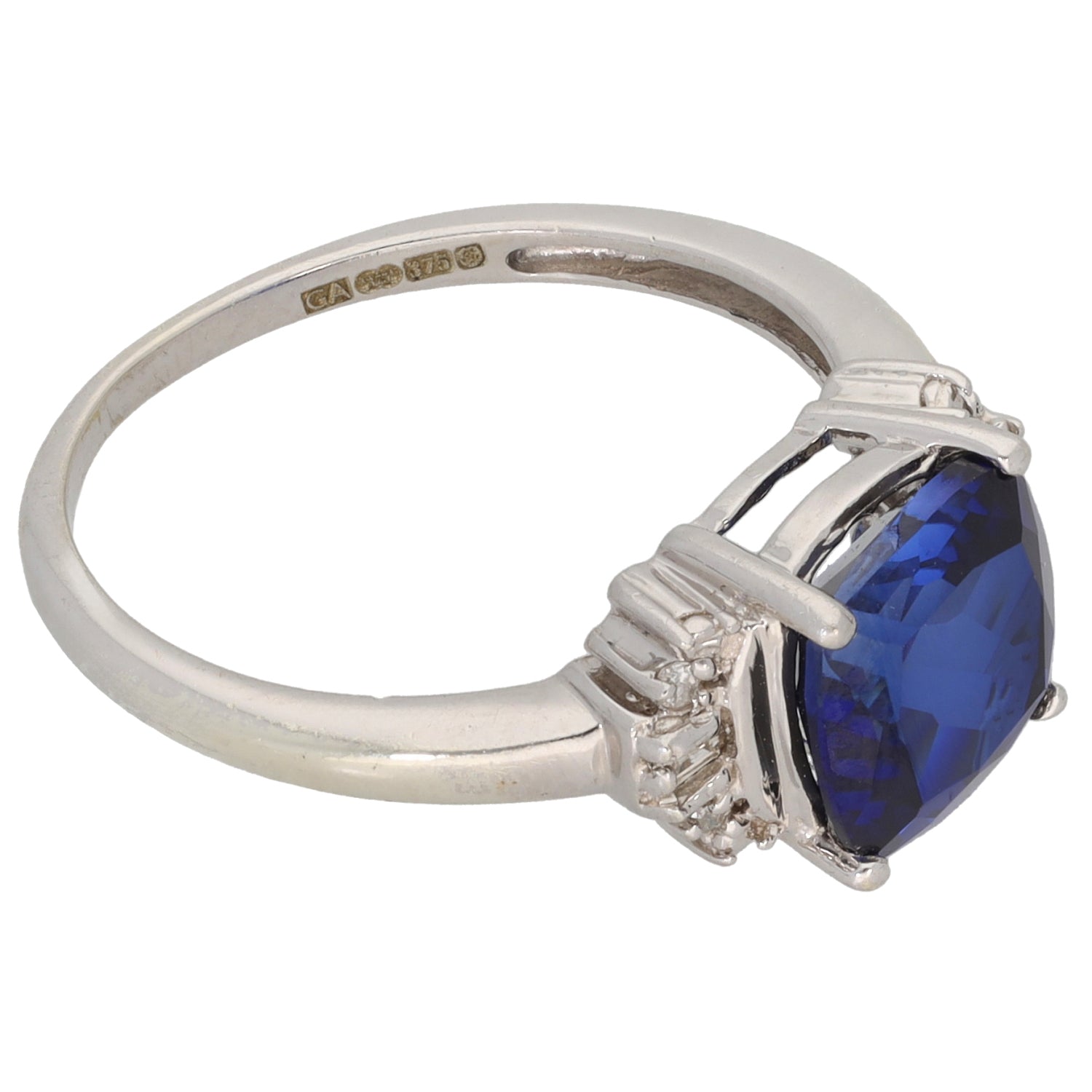 9ct White Gold Man Made Sapphire & 0.40ct Diamond Dress/Cocktail Ring Size N