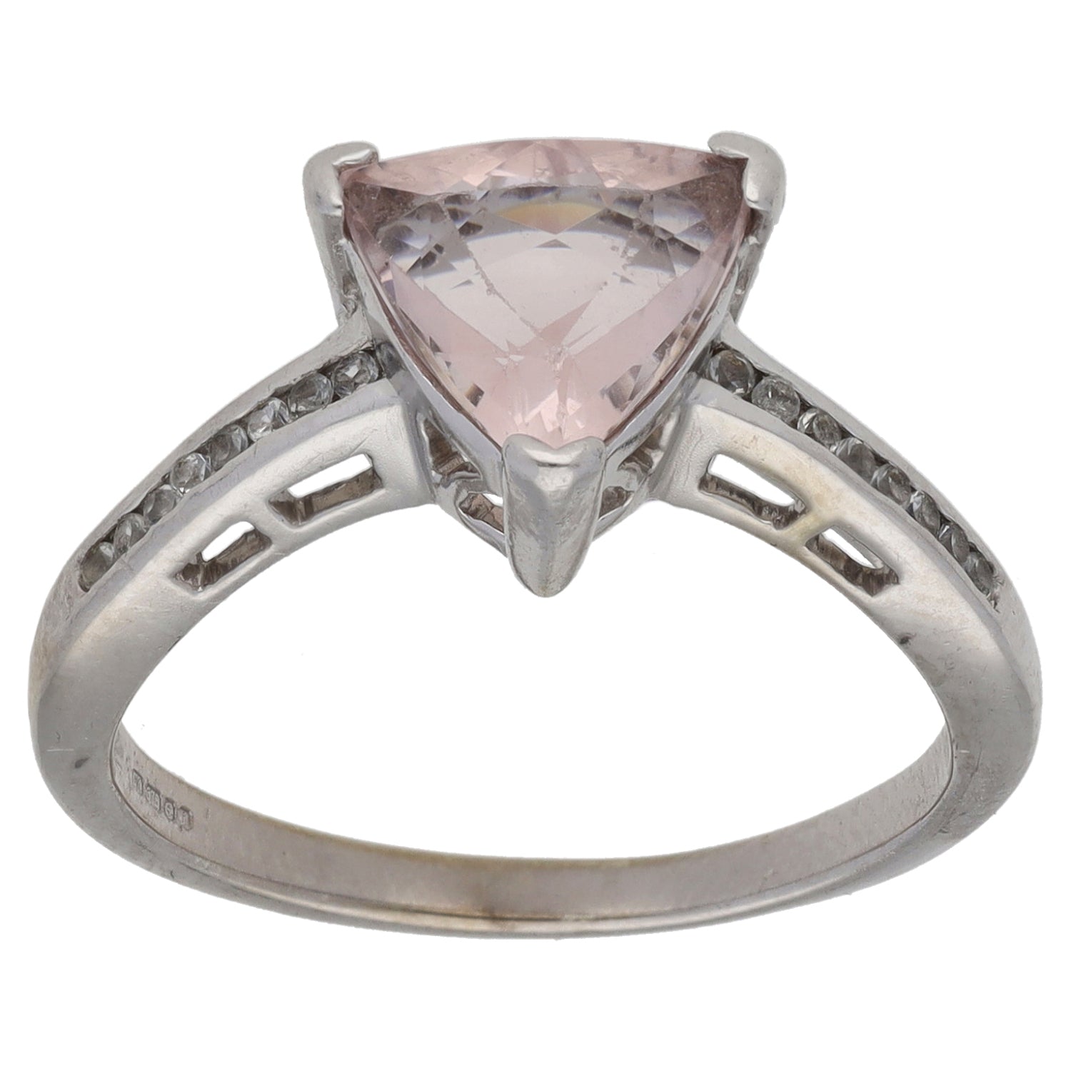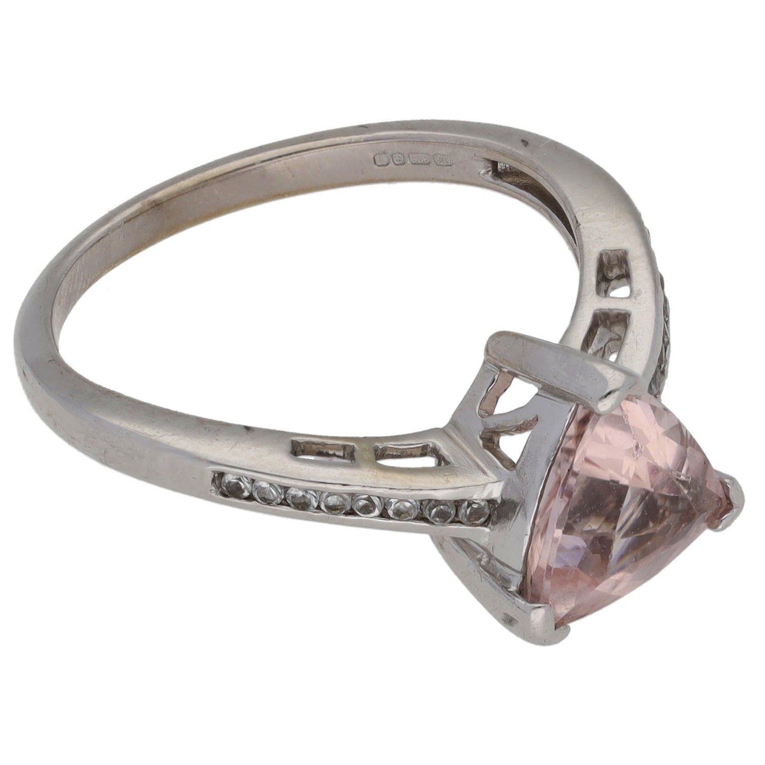 9ct White Gold Morganite & Imitation Single Stone Ring with Accent Stones Size N