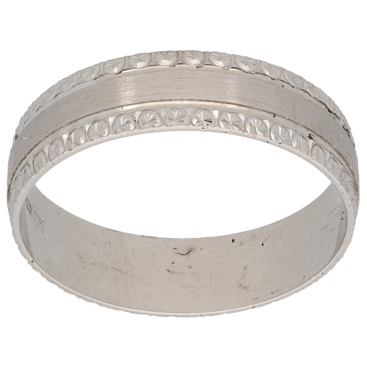 9ct White Gold Patterned Wedding Ring Size O