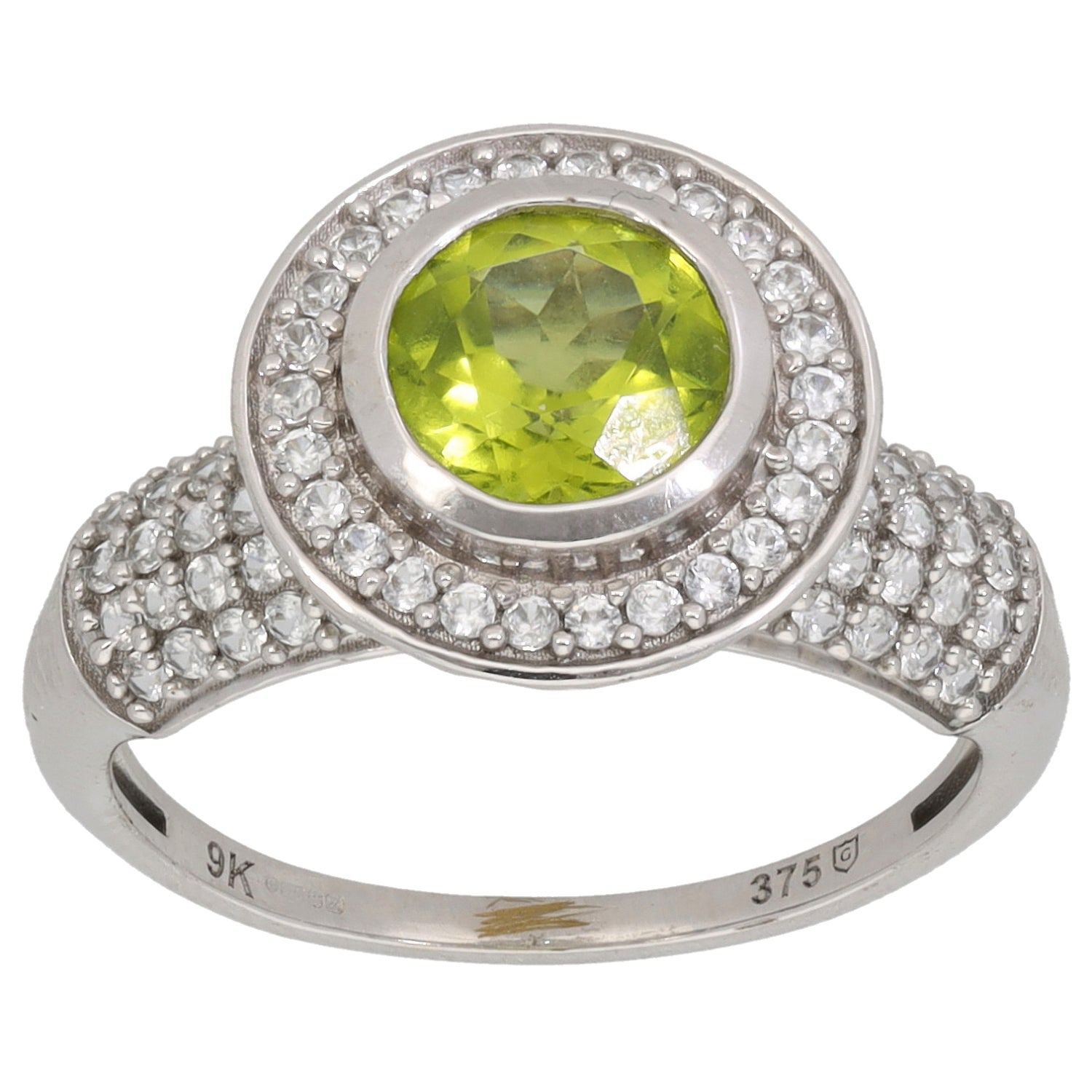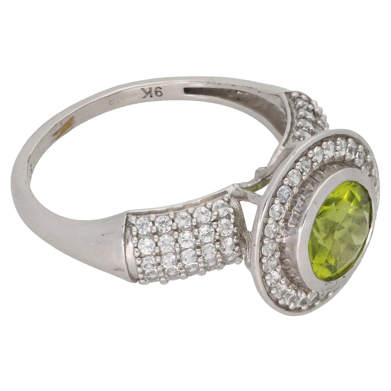 9ct White Gold Peridot & Cubic Zirconia Dress/Cocktail Ring Size N