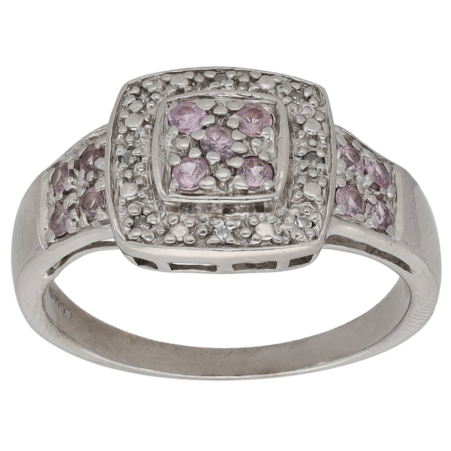 9ct White Gold Sapphire & 0.04ct Diamond Dress/Cocktail Ring Size O