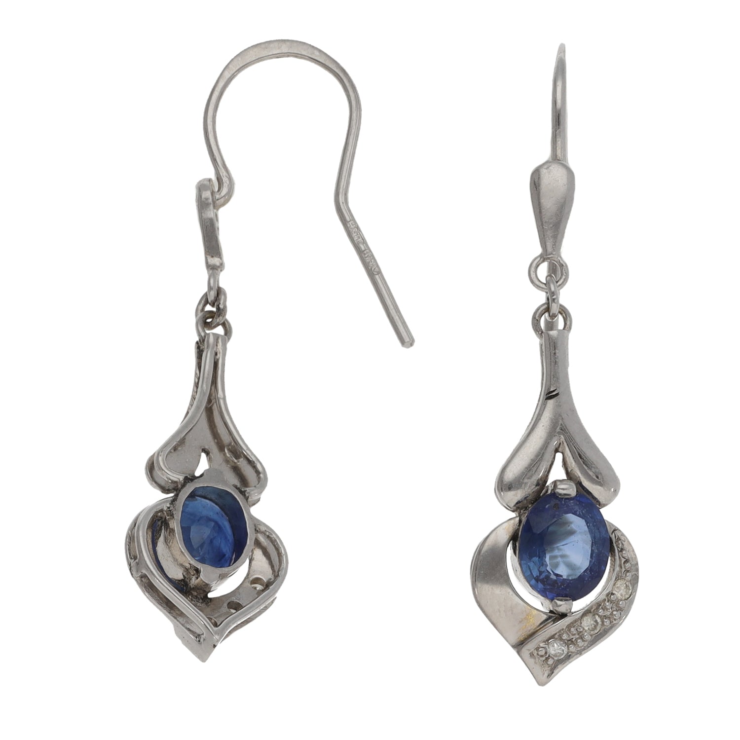 9ct White Gold Sapphire & 0.06ct Diamond Drop Earrings