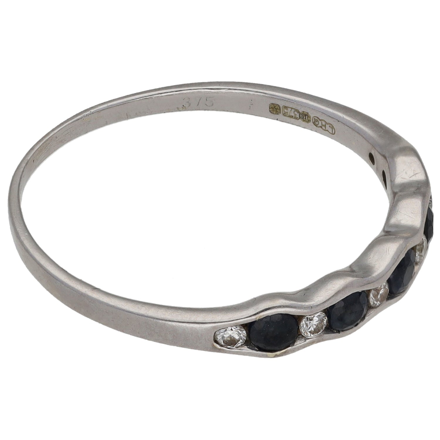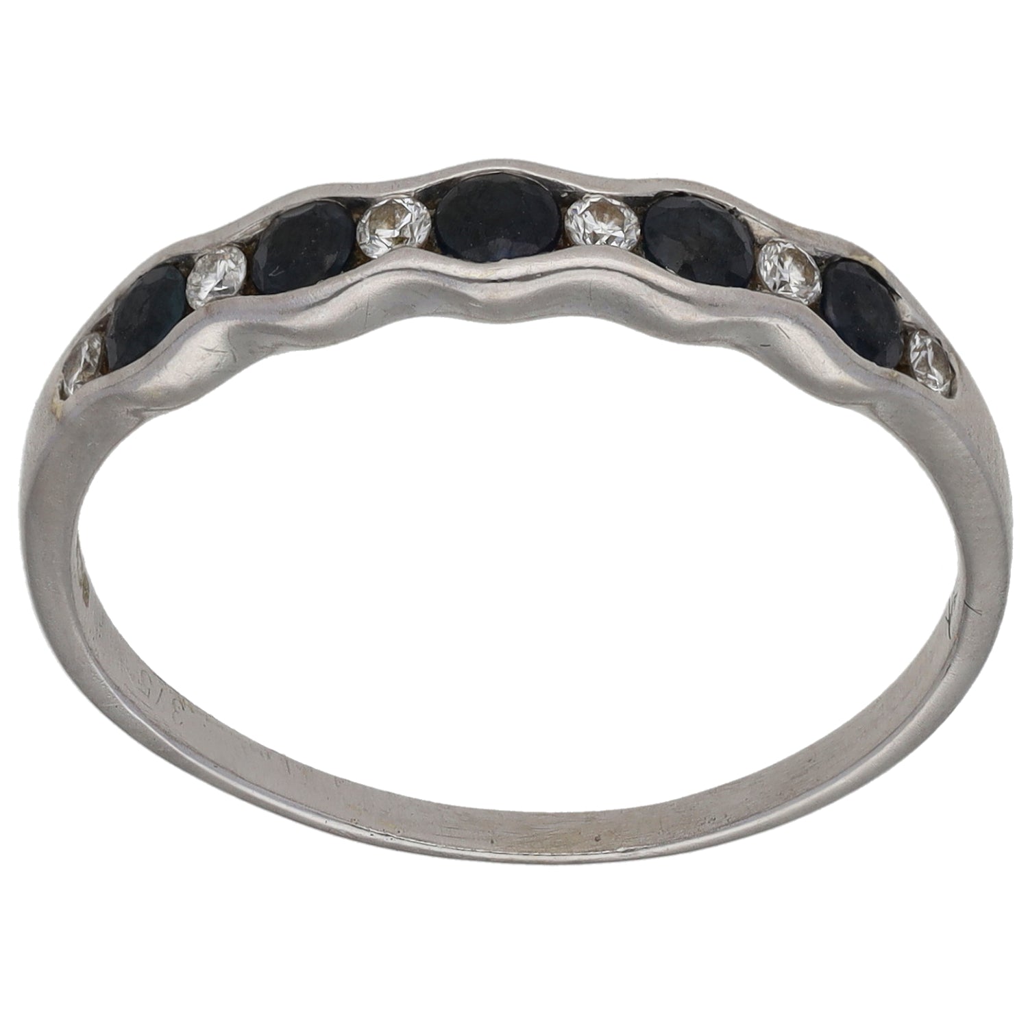 9ct White Gold Sapphire & 0.06ct Diamond Half Eternity Ring Size U