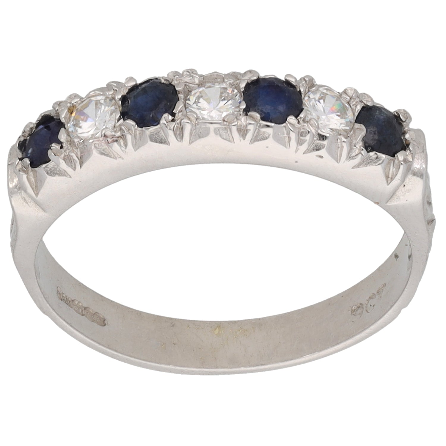 9ct White Gold Sapphire & Cubic Zirconia Half Eternity Ring Size P