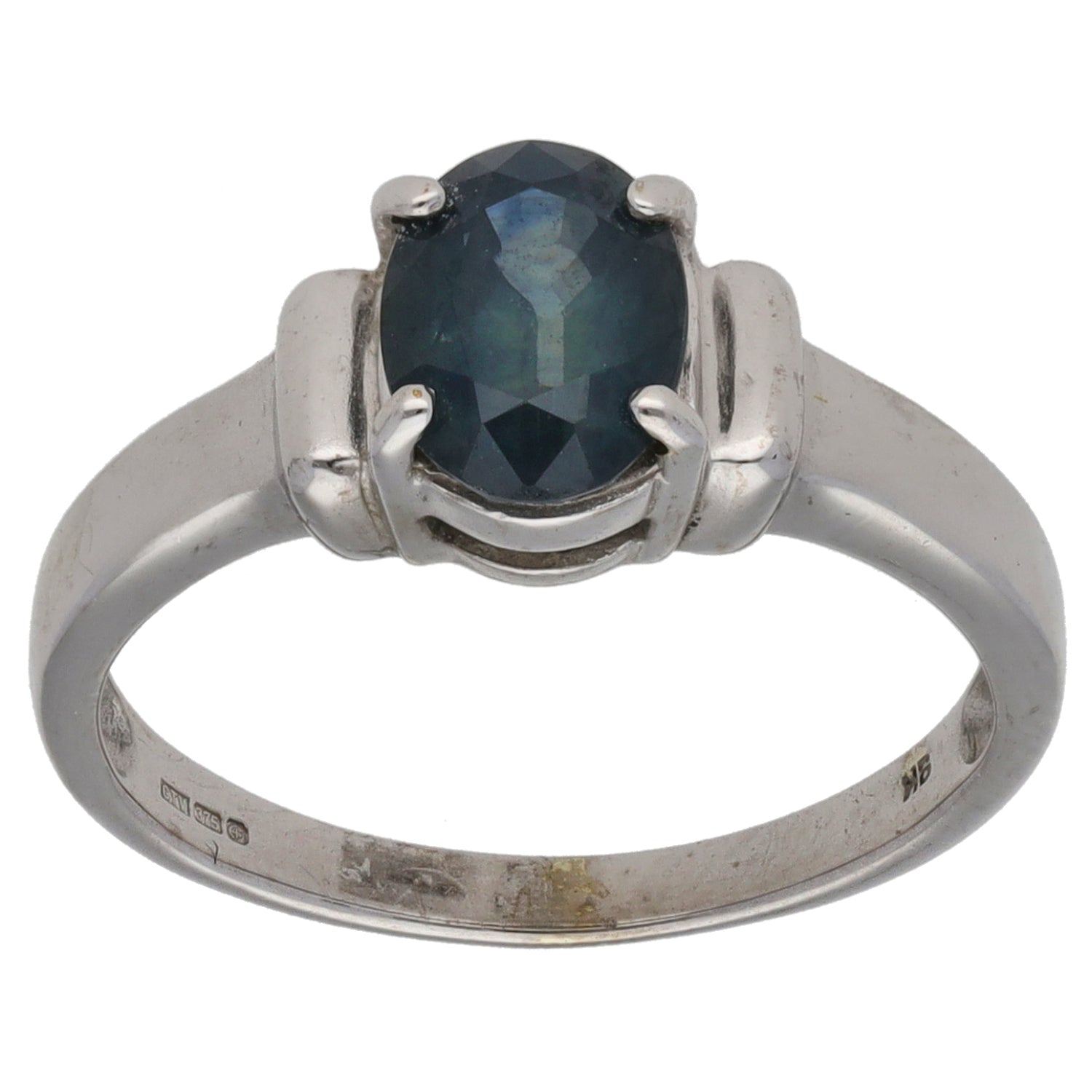 9ct White Gold Sapphire Single Stone Ring Size N