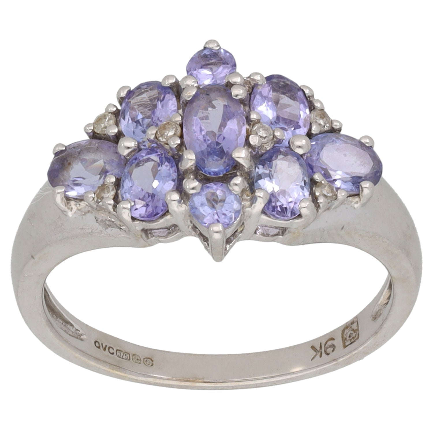 9ct White Gold Tanzanite & 0.03ct Diamond Dress/Cocktail Ring Size N