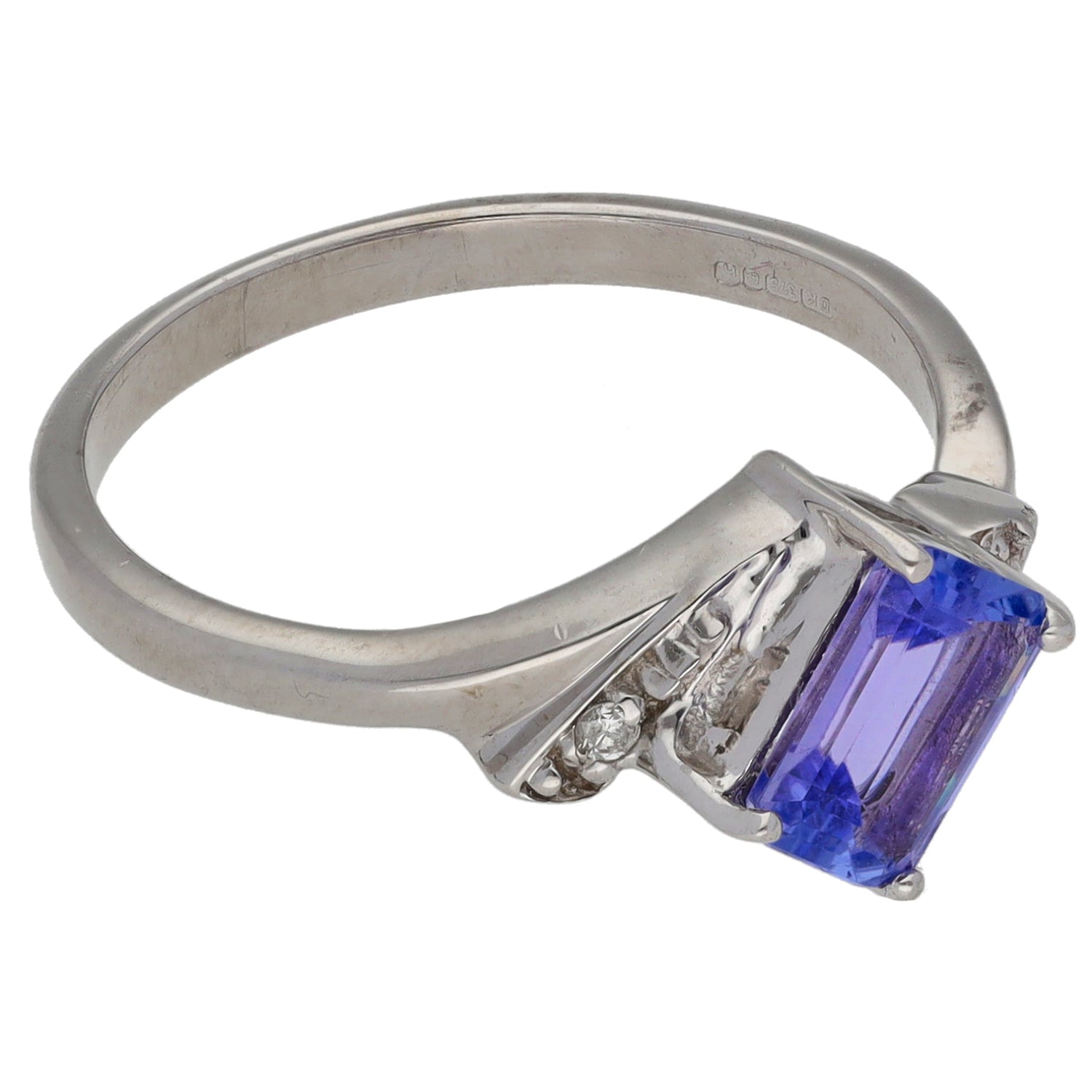 9ct White Gold Tanzanite & 0.02ct Diamond Single Stone Ring with Accent Stones Size N