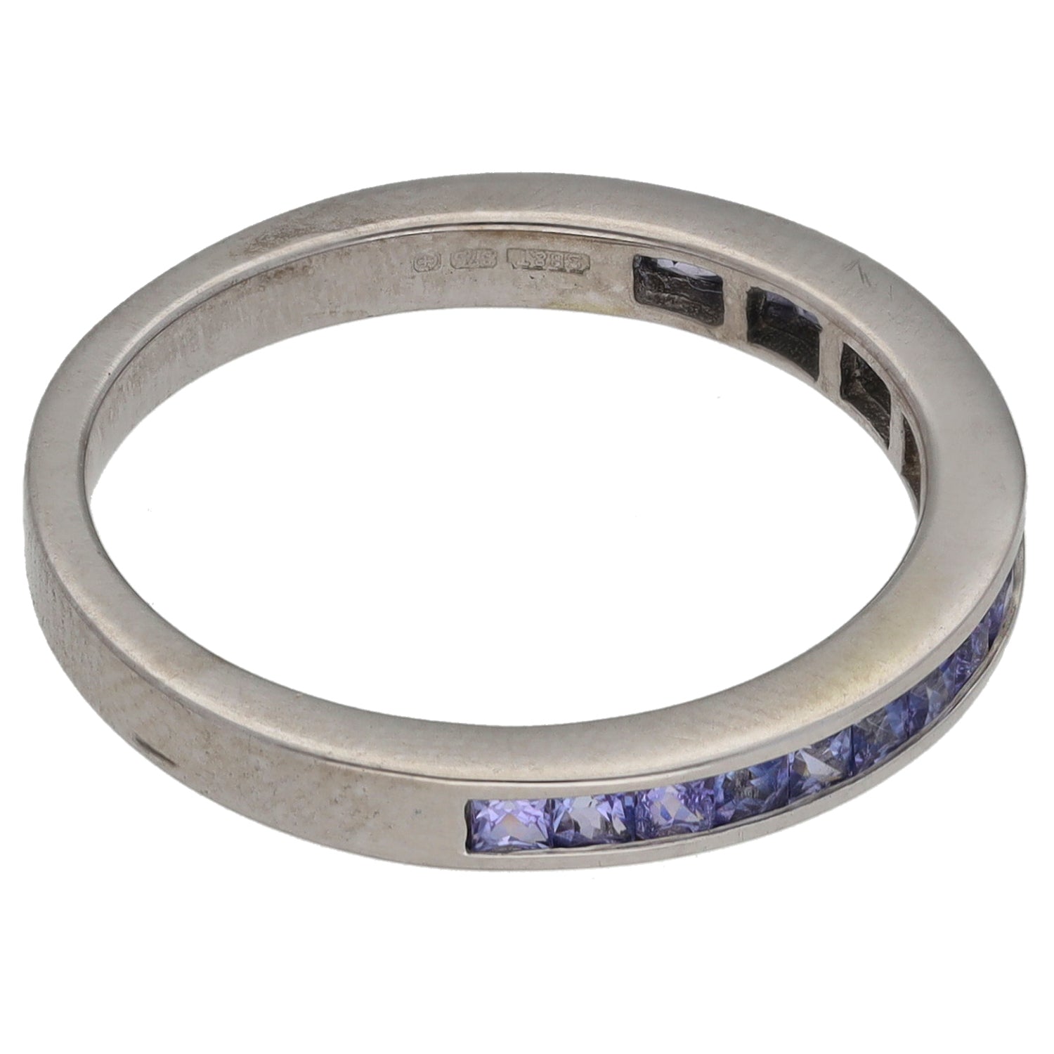 9ct White Gold Tanzanite Half Eternity Ring Size O