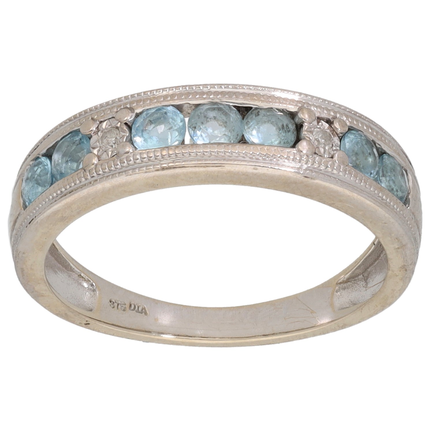 9ct White Gold Topaz & 0.01ct Diamond Half Eternity Ring Size K