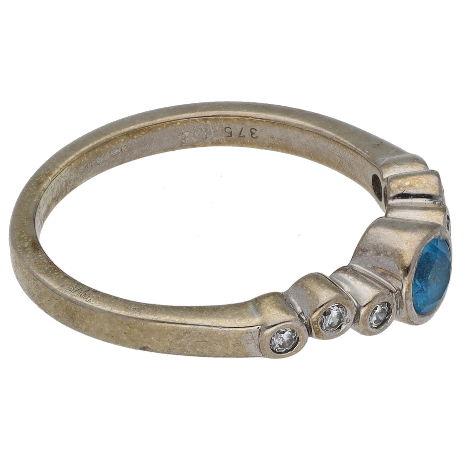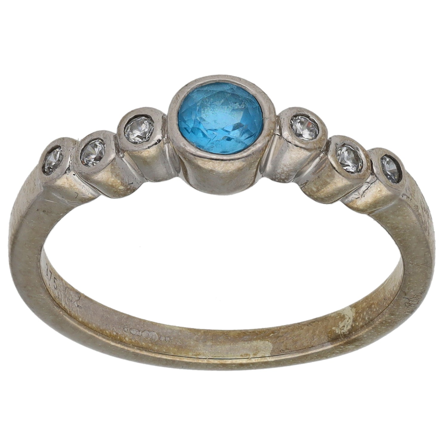 9ct White Gold Topaz & Cubic Zirconia Single Stone Ring with Accent Stones Size O