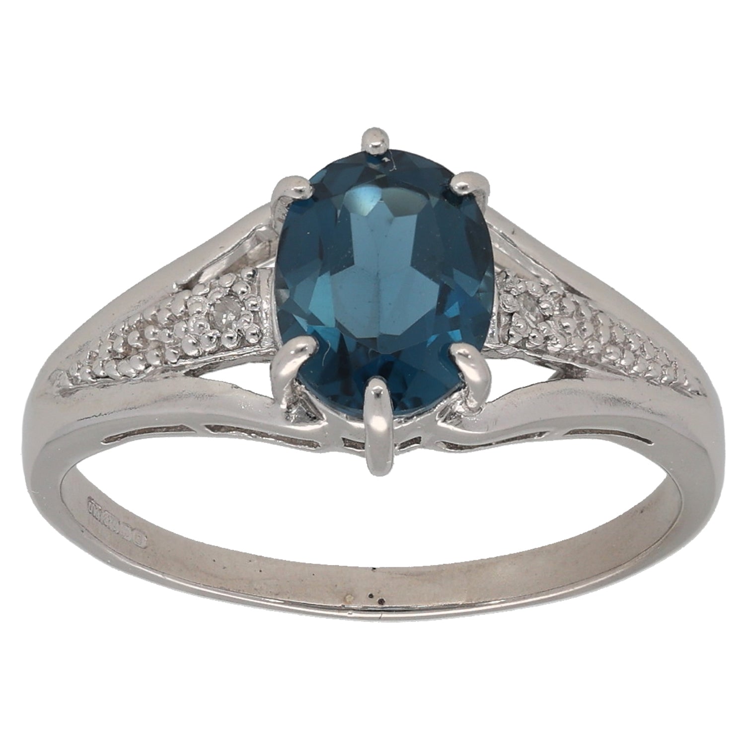 9ct White Gold Topaz & 0.02ct Diamond Dress/Cocktail Ring Size M