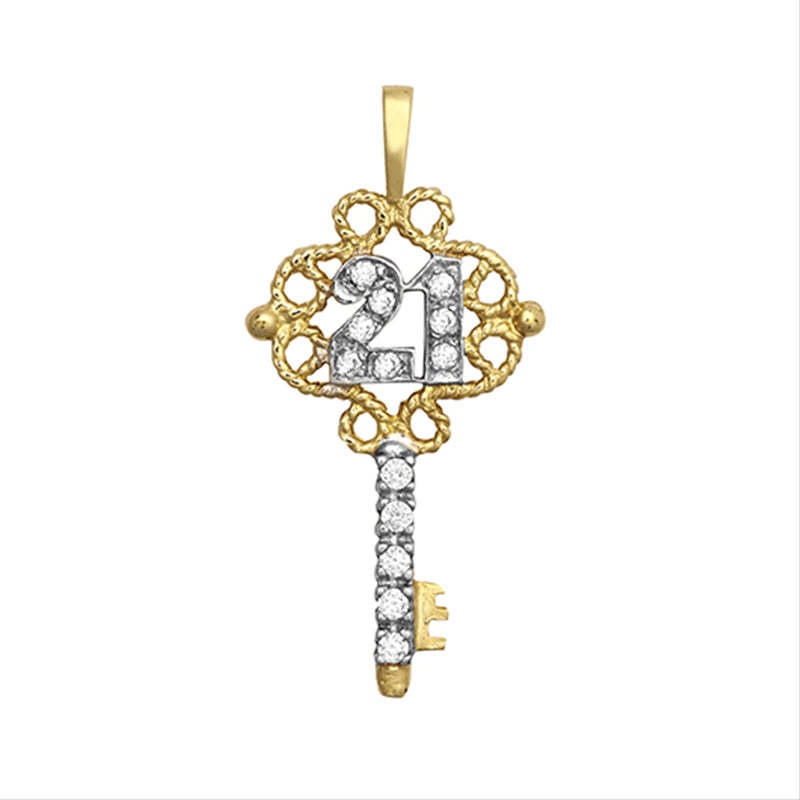 New 9ct Gold Cubic Zirconia 21 Key Pendant 35mm