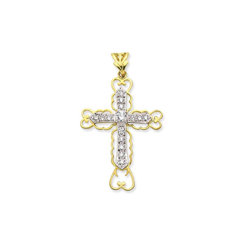 New 9ct Gold Cubic Zirconia Cross Pendant 46mm