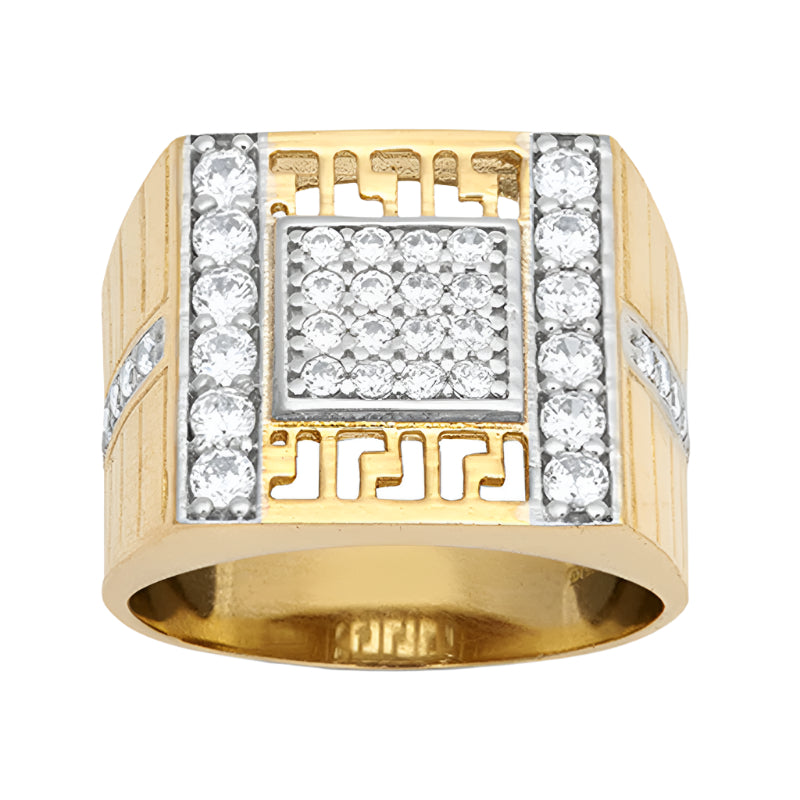 New 9ct Gold Cubic Zirconia Greek Key Signet Ring Sizes R-Z