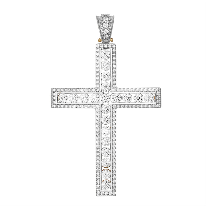 New 9ct White Gold Cubic Zirconia Cross 47mm