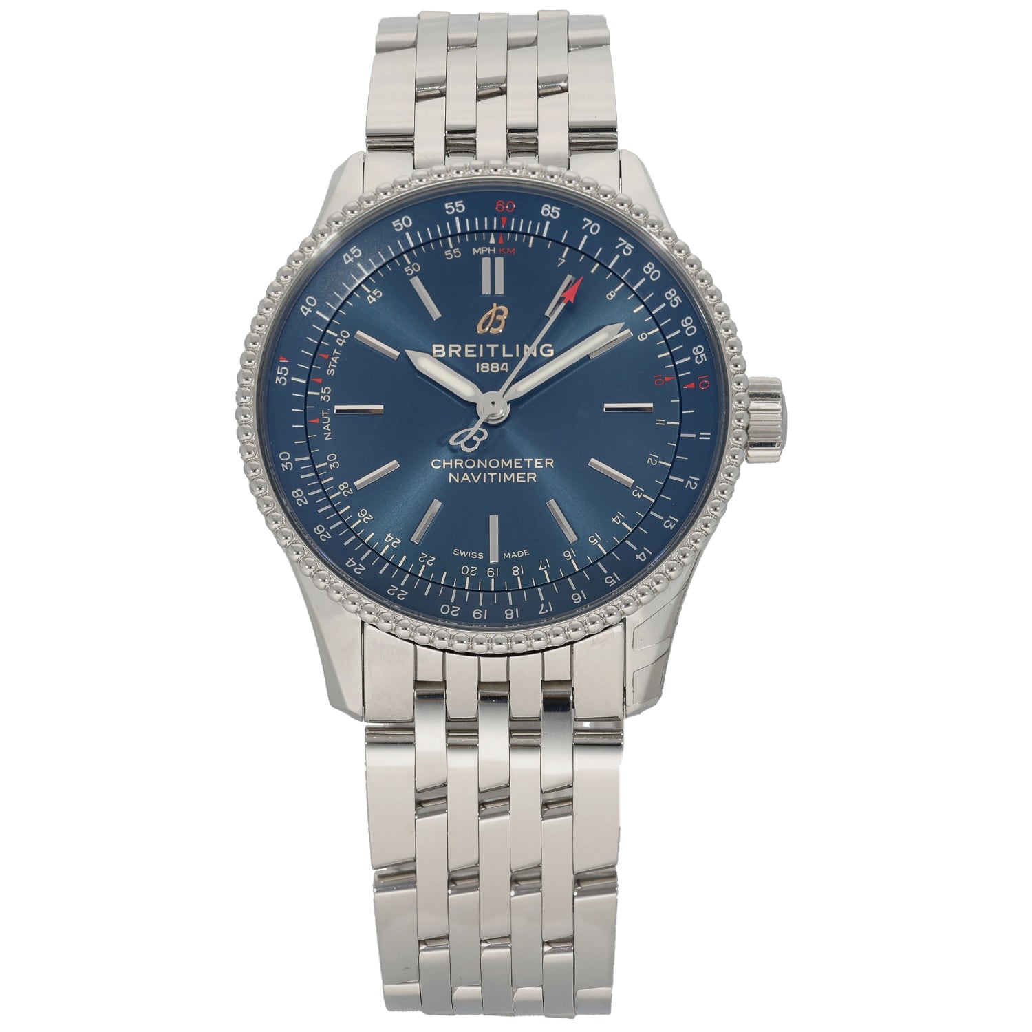 The Breitling Navitimer is an intricate timepiece which was launched by Breitling back in 1969, being a perfect addition to any watch collection. This pre-owned example is finished with a blue dial inside a 35mm stainless steel case, which is fitted on an 18.5cm stainless steel bracelet. The...