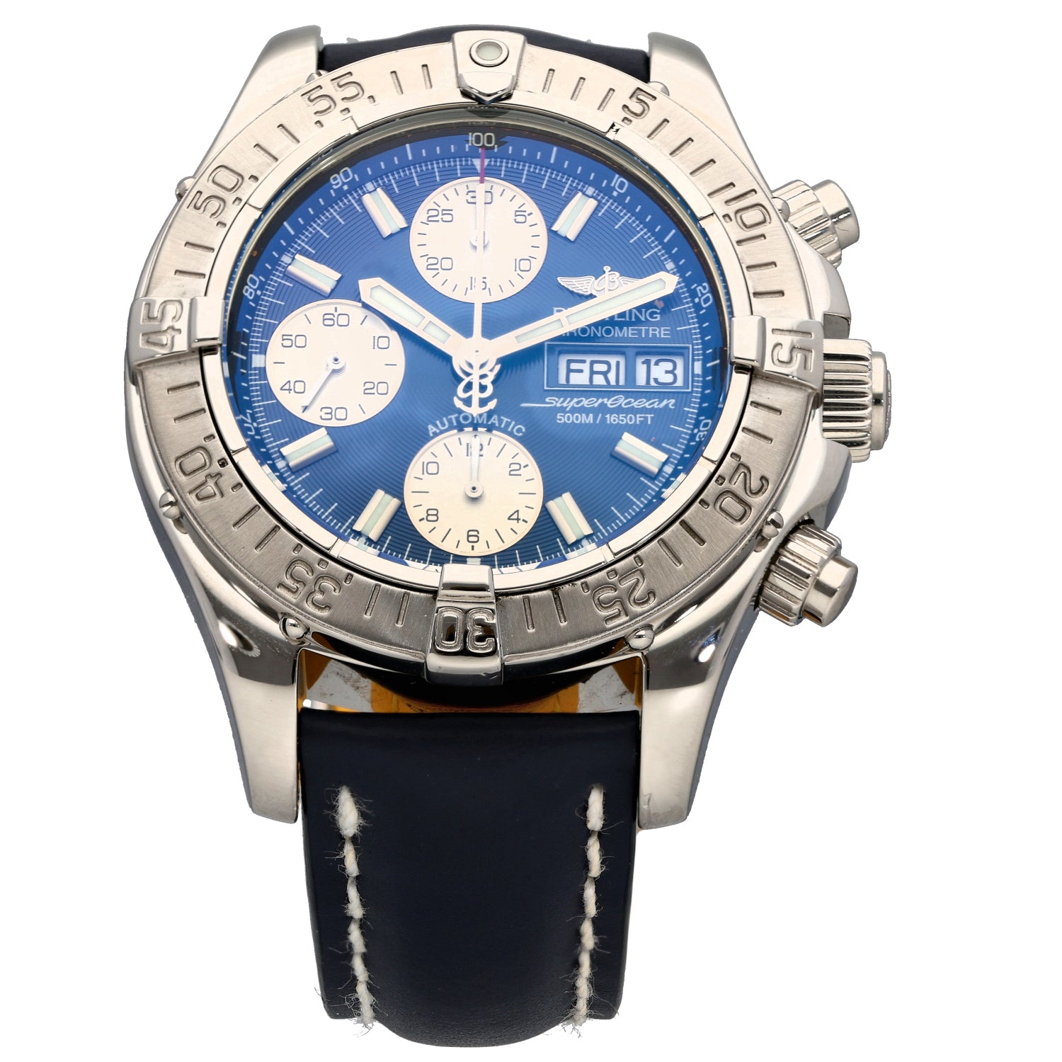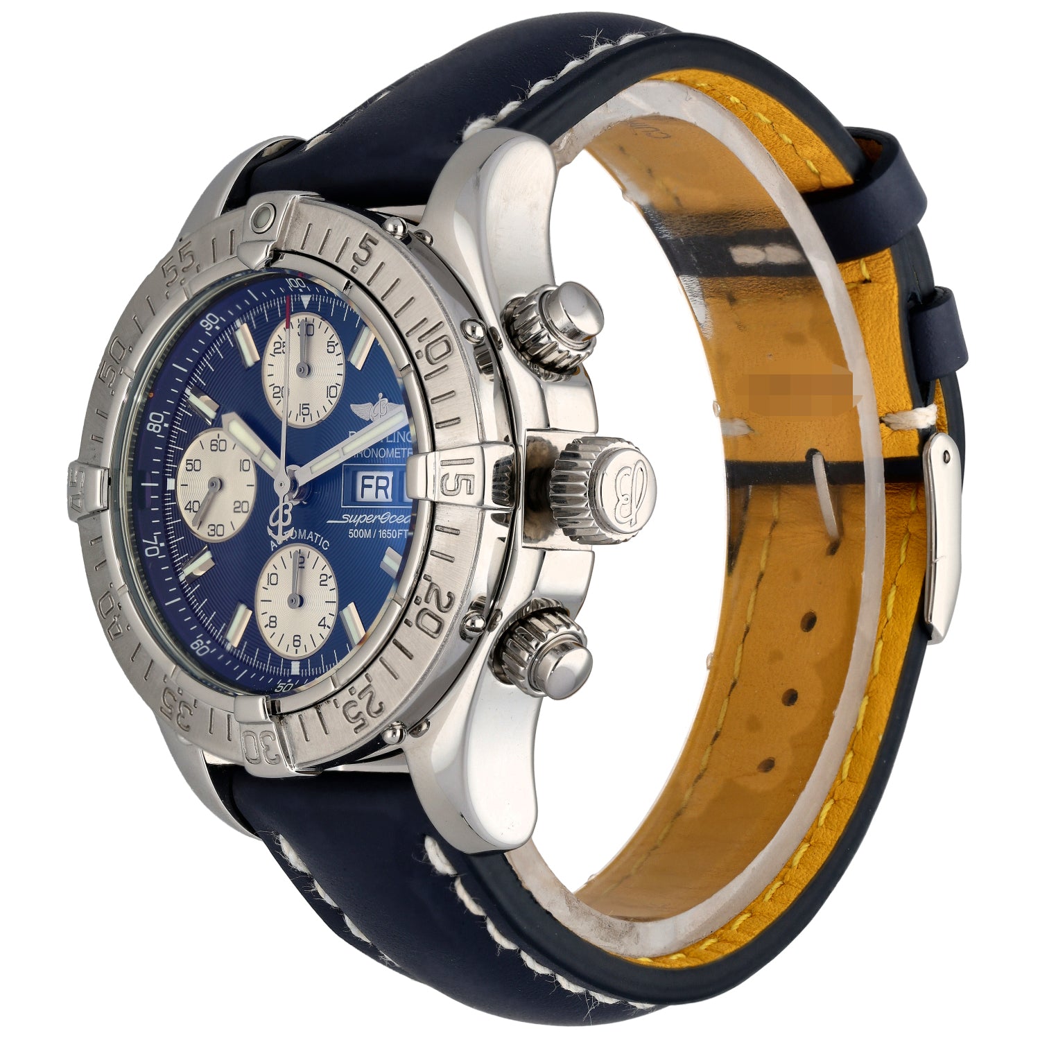 The Breitling Superocean is an intricate timepiece which was launched by Breitling back in the 1957, being a perfect addition to any watch collection. This pre-owned example is finished with a blue dial inside a 42mm stainless steel case, which is fitted on an adjustable leather bracelet. The watch is also powered by an Automatic movement and is water resistant up to 500 metres.