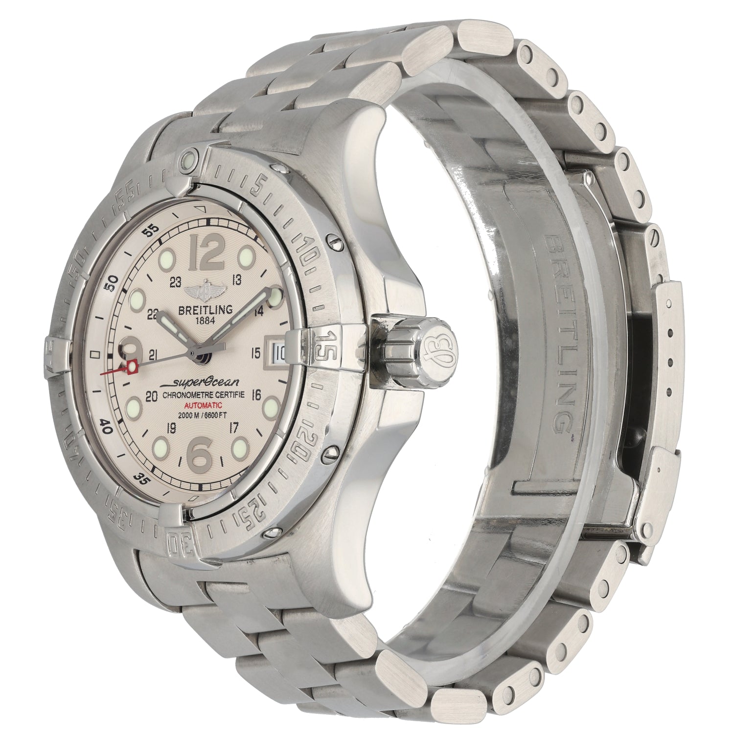 The Breitling Superocean is an intricate timepiece which was launched by Breitling back in the 1957, being a perfect addition to any watch collection. This pre-owned example is finished with a cream dial inside a 44mm stainless steel case, which is fitted on an 18.5cm stainless steel...