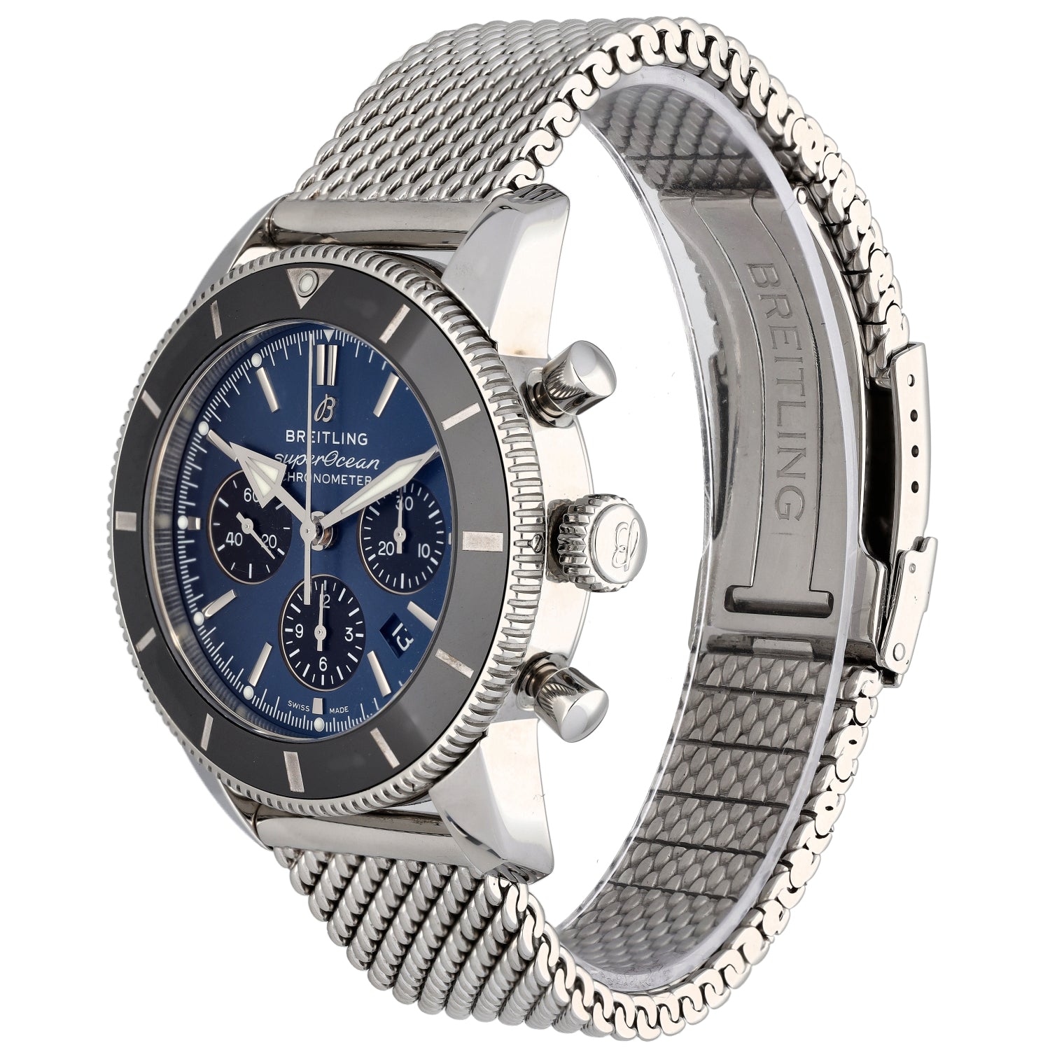 The Breitling Superocean is an intricate timepiece which was launched by Breitling back in the 1957, being a perfect addition to any watch collection. This pre-owned example is finished with a blue dial inside a 44mm stainless steel case, which is fitted on an 19.5cm stainless steel bracelet. The watch is also powered by an Automatic movement and is water resistant up to 200 metres.