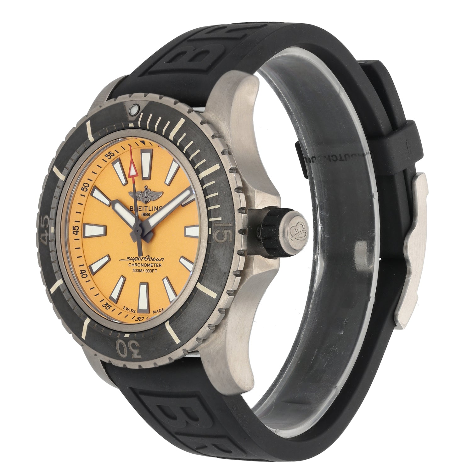 The Breitling Superocean is an intricate timepiece which was launched by Breitling back in the 1957, being a perfect addition to any watch collection. This pre-owned example is finished with a yellow dial inside a 48mm titanium case, which is fitted on an adjustable rubber bracelet. The watch is also powered by an Automatic movement and is water resistant up to 300 metres.