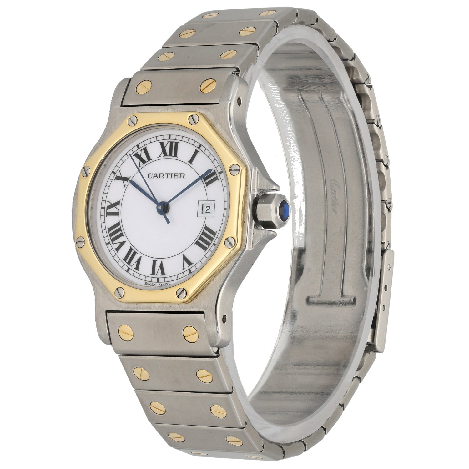 The Cartier Santos is an intricate timepiece which was launched by Cartier back in 1904, being a perfect addition to any watch collection. This pre-owned example is finished with a white Mother of Pearl dial inside a 29mm bi-colour case, which is fitted on a 16cm bi-colour bracelet. The watch is also powered by an Automatic movement and is water resistant up to 30 metres.