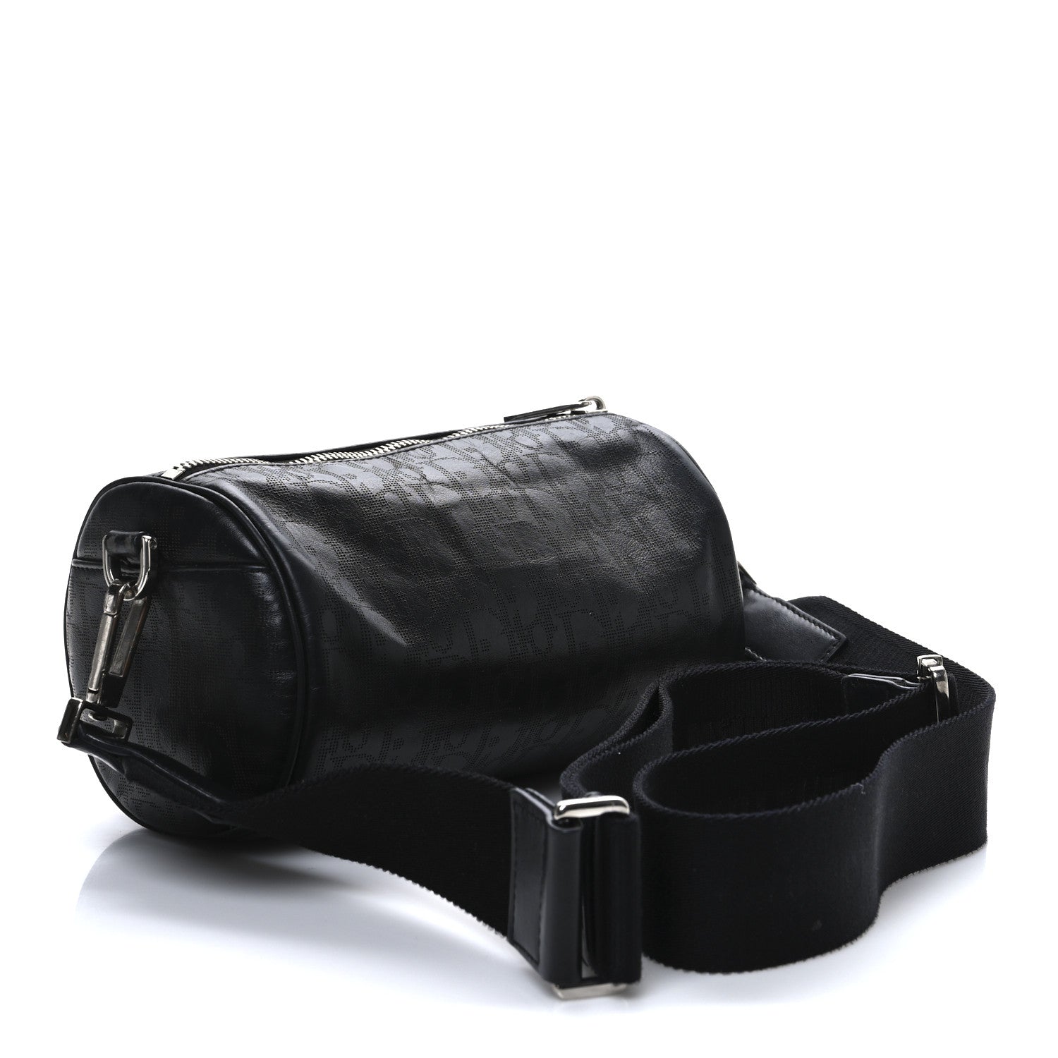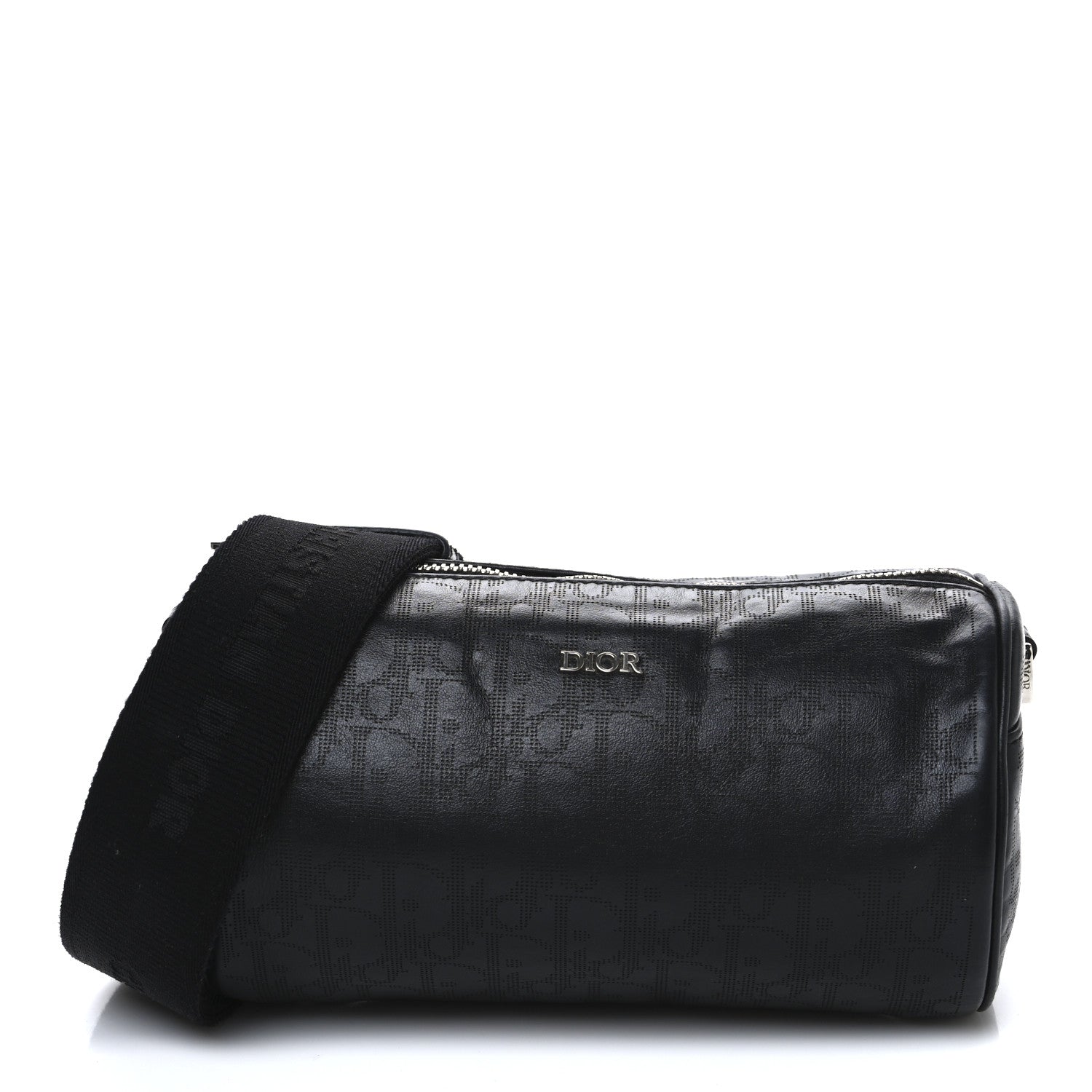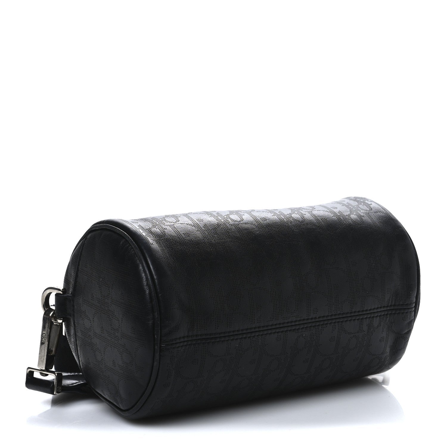 Christian Dior Perforated Oblique Roller Messenger Calfskin Leather Bag - Black
