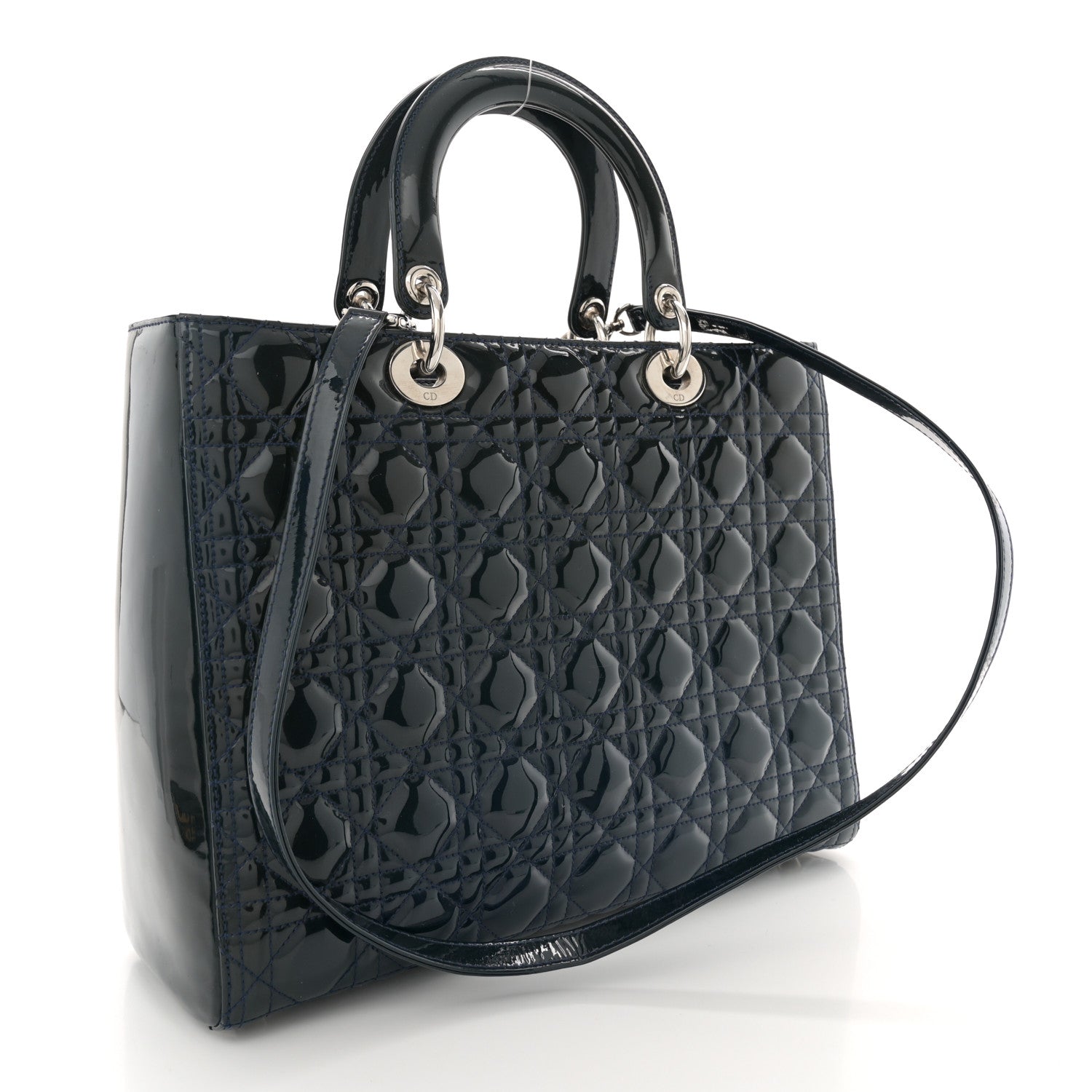 Christian Dior Patent Cannage Tote Bag - Navy Blue