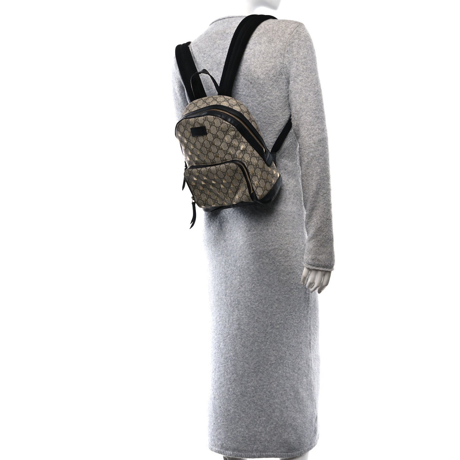 Gucci GG Supreme Monogram Bees Print Small Day Backpack - Beige, Gold & Black