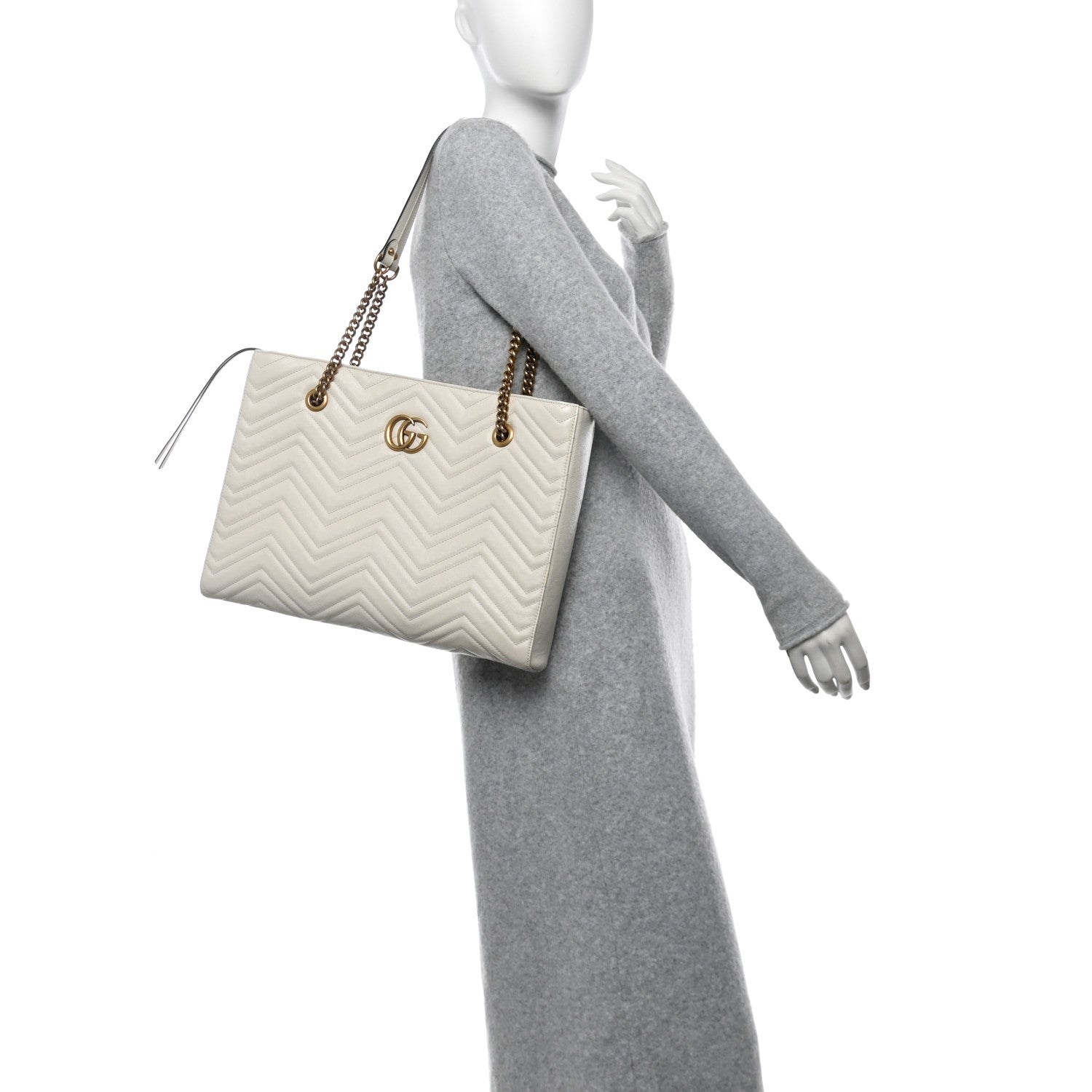 Gucci GG Marmont Tote Calfskin Matelasse Leather Bag - White